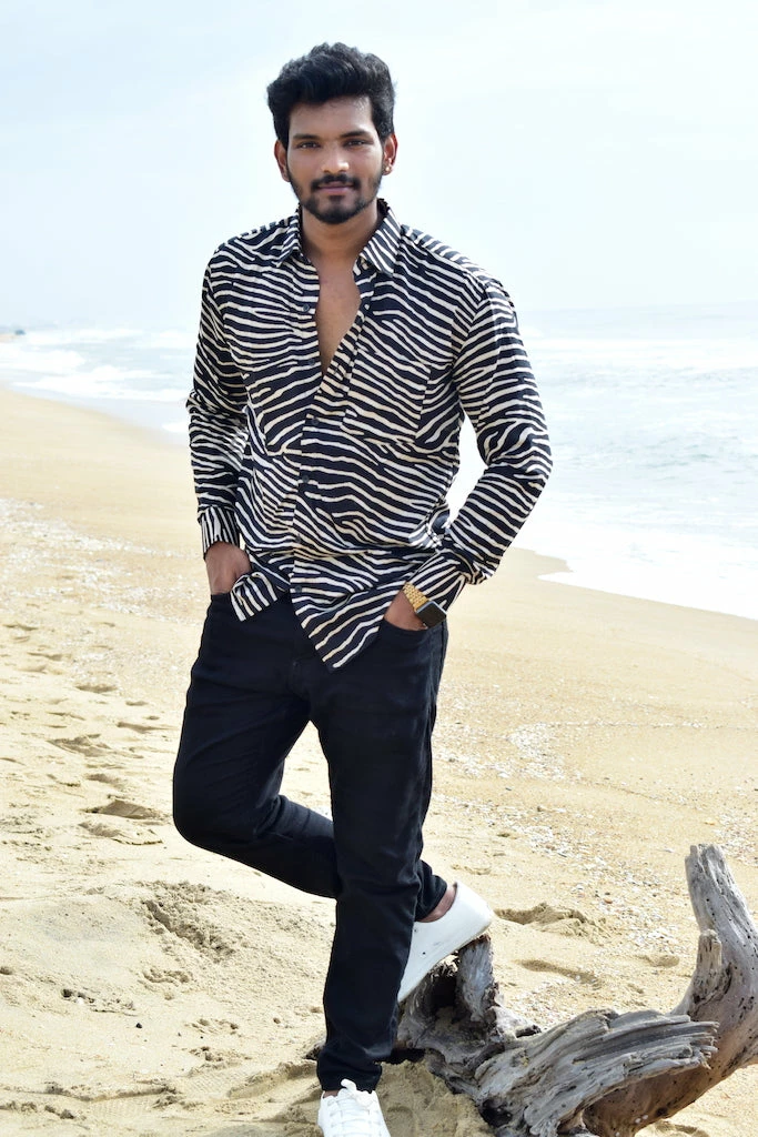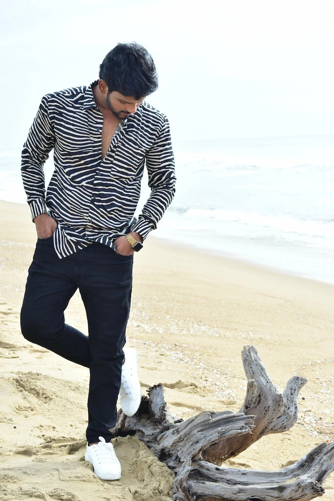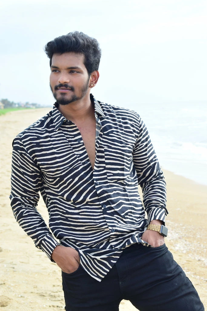 Zebra stripe is a smart black and beige stripe cotton shirt, perfect for a fun evening with your clan! Guarantee you would love the fabric fall & feel!