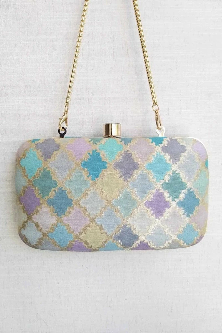 Be the first to review “AMYRA Morocco Shaded Pure Silk Banarasi Clutch – Blue Purse & Potli” Cancel reply