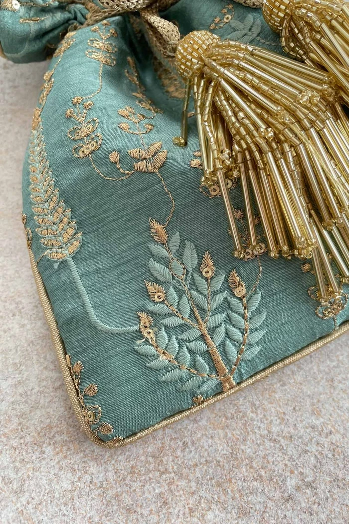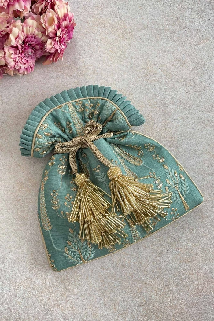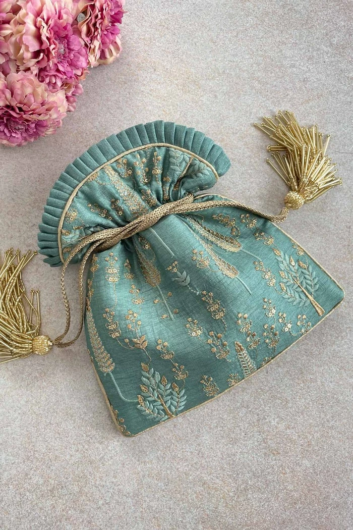Be the first to review “AMYRA Purse & Potli Arbre Silk Embroidered Potli Bag – Blue Green” Cancel reply