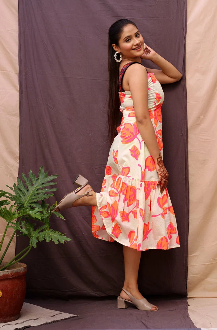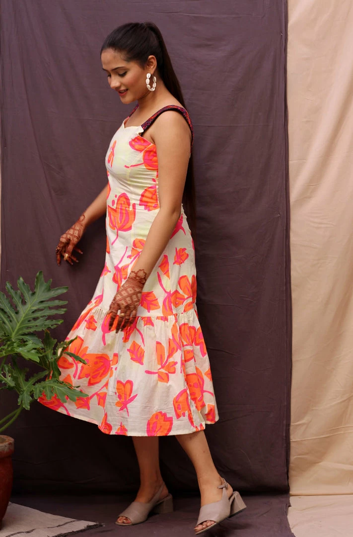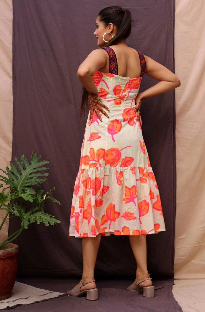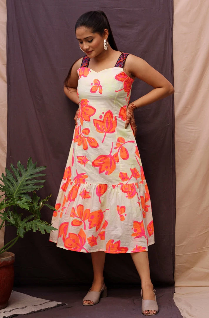 A popping print in a fun silhouette. This dress has embroidered straps with a back zipper. The dress has a snug fit, for a comfy fit, choose a size plus.