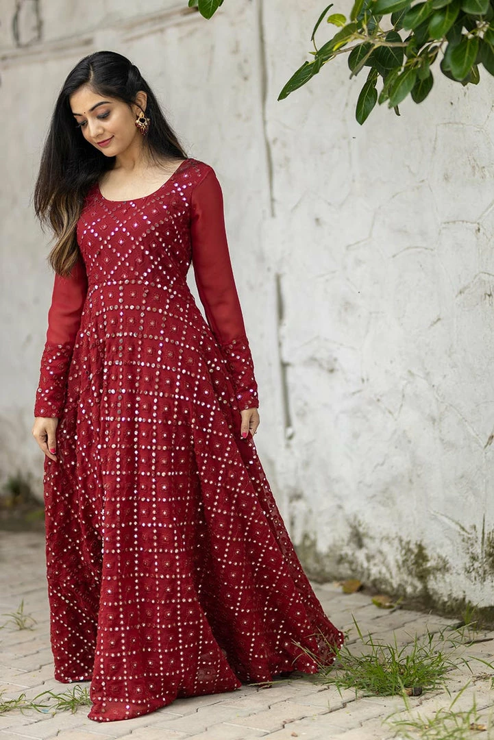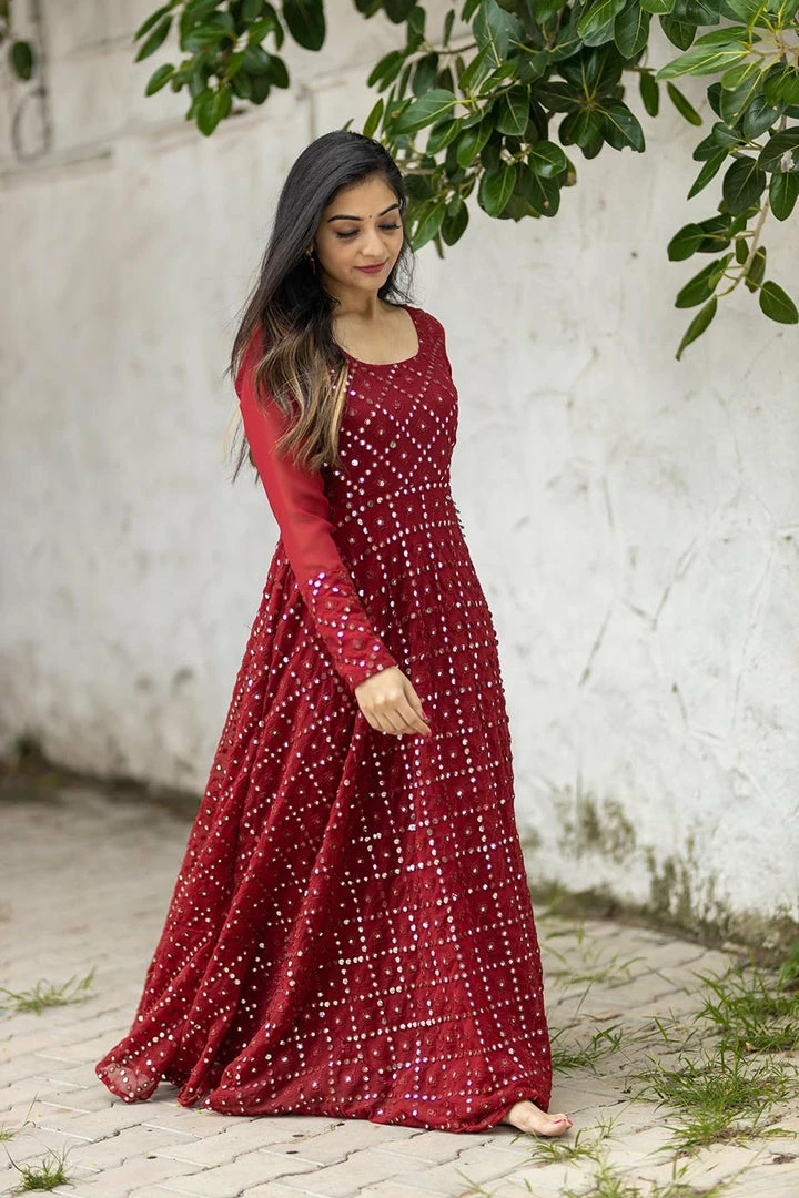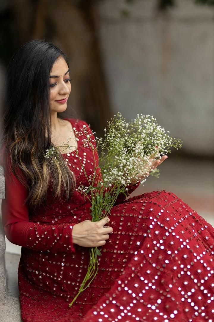 The coming together of a new-age silhouette and the most loved embroidery work paired with patola print in contrast color is truly a magical thing and the outcome is spectacular..The dress is fully lined.