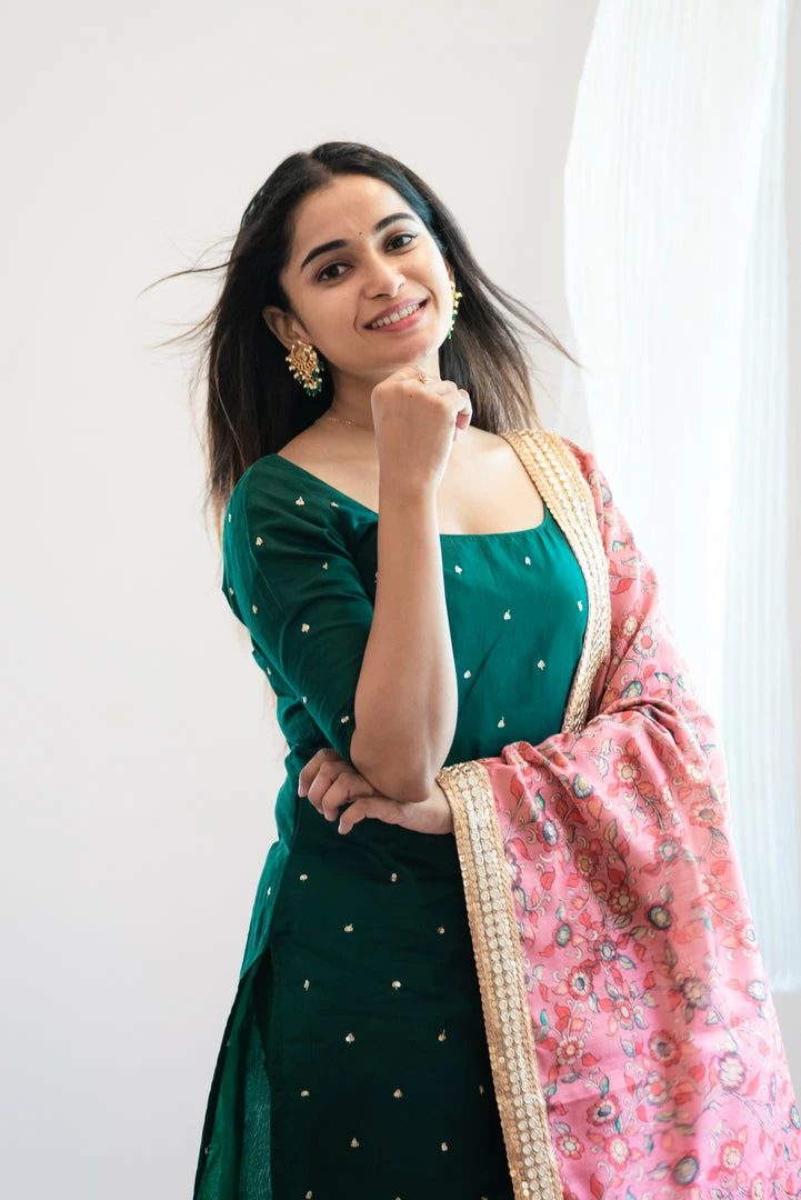 The season of festivals is here! While it’s easy to find the regular peaches and powder blues, this time opt for an off-beat combo. Maroon works exceptionally well with teal blue. Contrast colors and the vibrant zari border rings the festive mood!