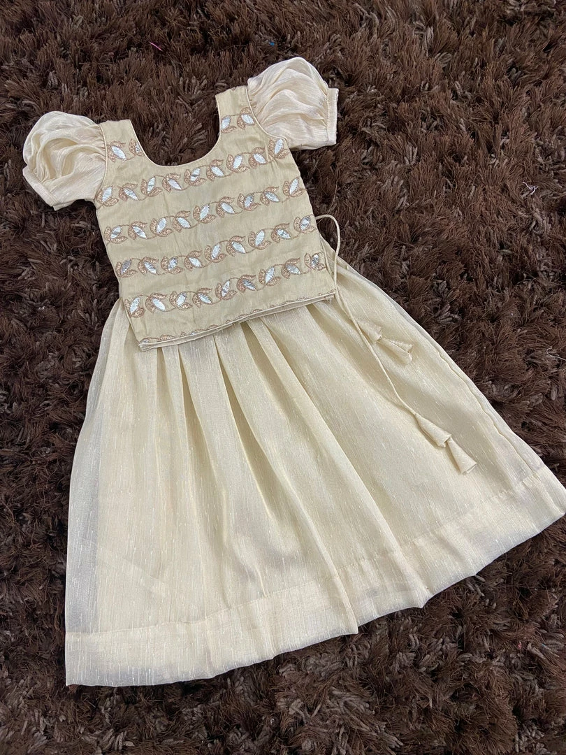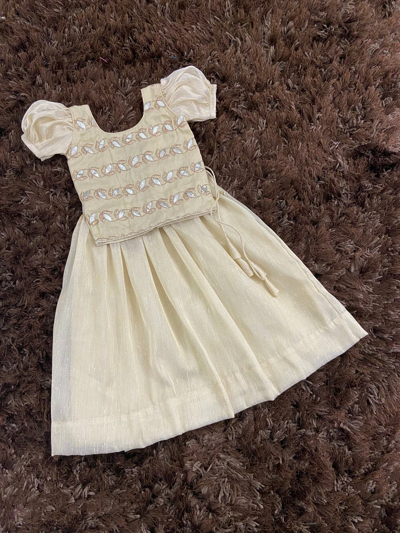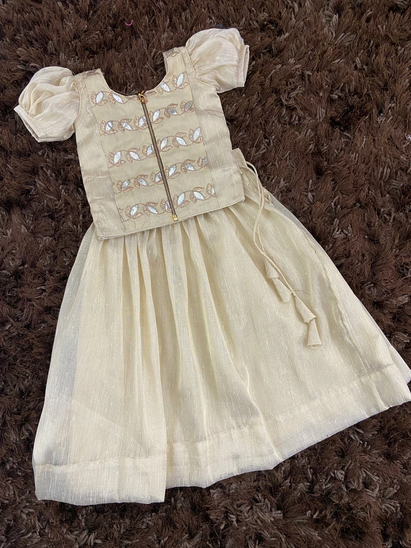 This collection of embroidered foil print top with tissue silk skirt adds glitter to this festive season. The biggest joy are found in simple things like dressing up the little princess. This is a must have for this festive season. Back Metallic zipper closure.