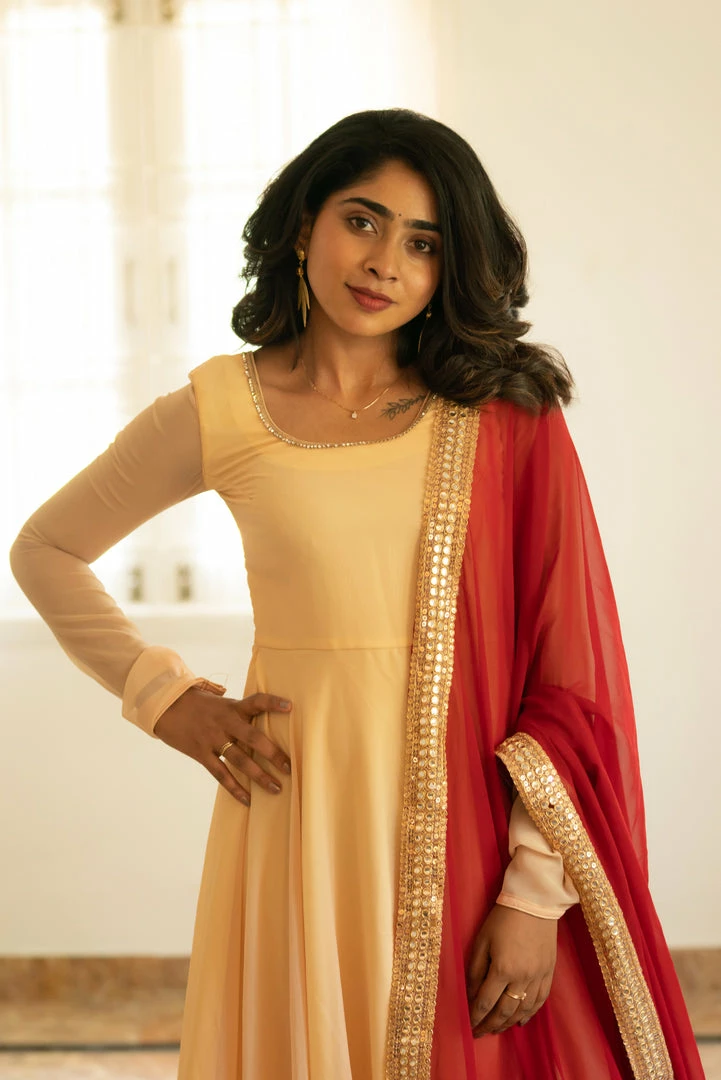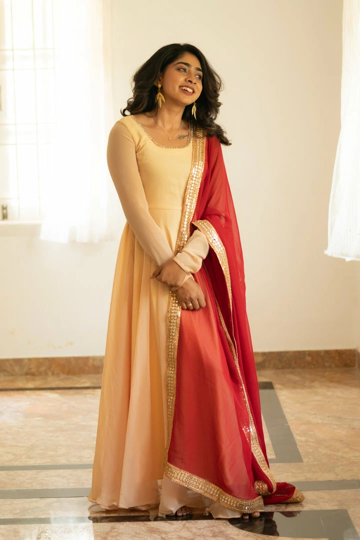 Look brighter than the sunshine in our Isha maxi with dupatta with zari borders to add a little glam. This purple maxi dress with violet dupatta ornated with gold zari border is a must have in your wardrobe!