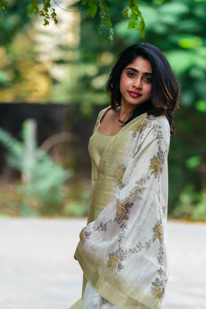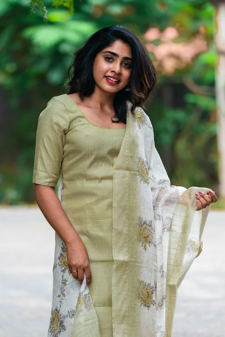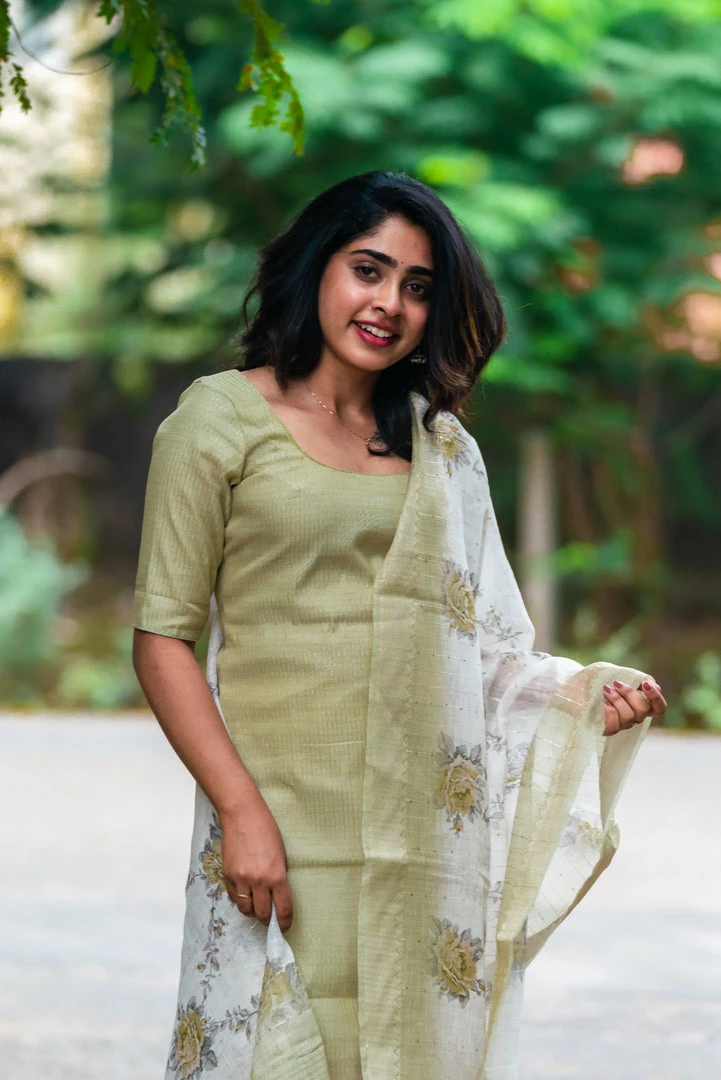 Printed soft chanderi suit with top and dupatta. Set of two top and dupatta.