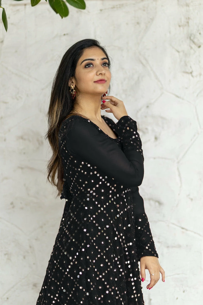 The coming together of a new-age silhouette and the most loved hand embroidery work is truly a magical thing and the outcome is spectacular. Good clothes are meant to not just make you look good but also make you feel good from inside and this dress will achieve exactly that!Β