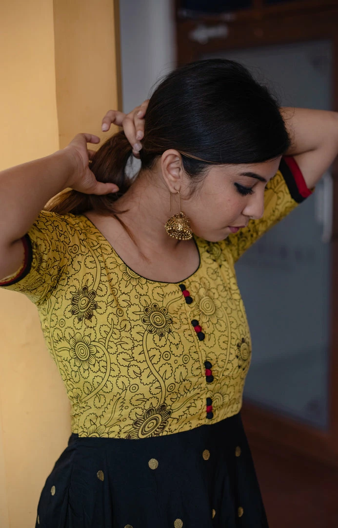 Fabri used: Yellow Kalamkari , Black Chanderi