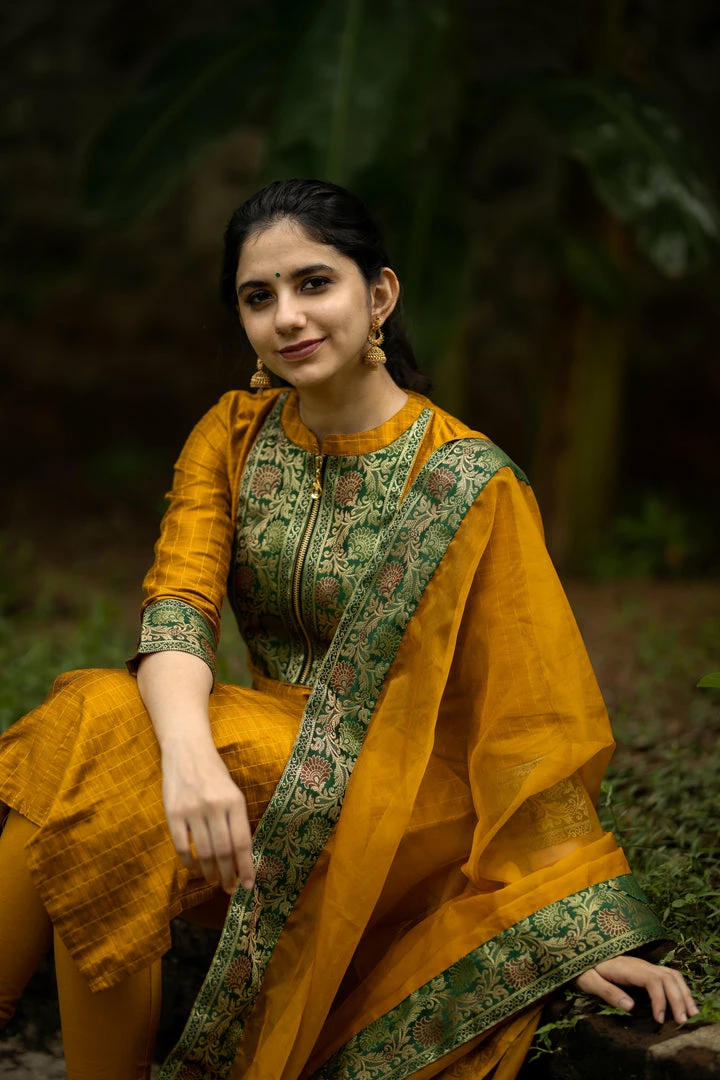 Our contemporary kurti with Banarasi Zari borders is here to elevate your style statement!ย Its is sophisticated yet young. This simple yet stylish lining kurti is a must-have for this festive season. The dupatta with the border detailing rings in the festive mood. Set of top and dupatta.
