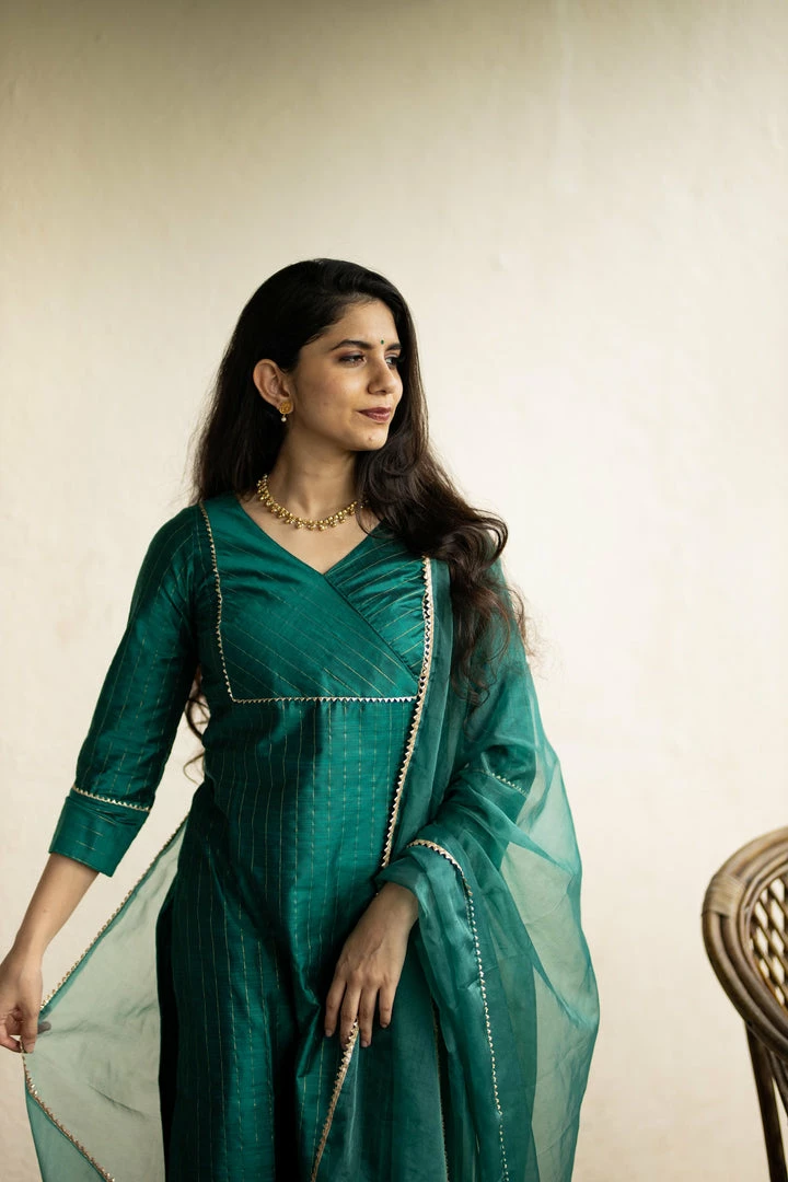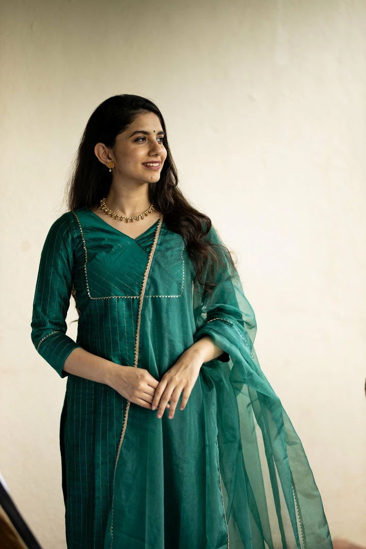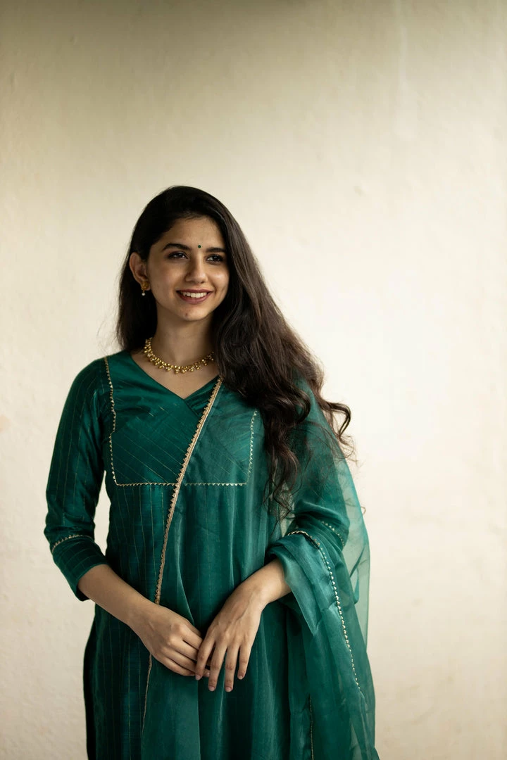 Sass up your wardrobe with this festive season with vibrant colors. This kurti with yoke detailing and soft organza dupatta is so on style! Spruce it up with some chic jewellery this ootd is sure to grab eyeballs!Only Kurta and Dupatta.