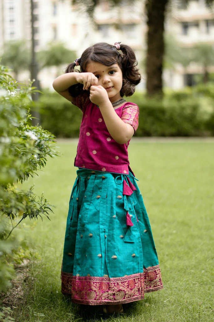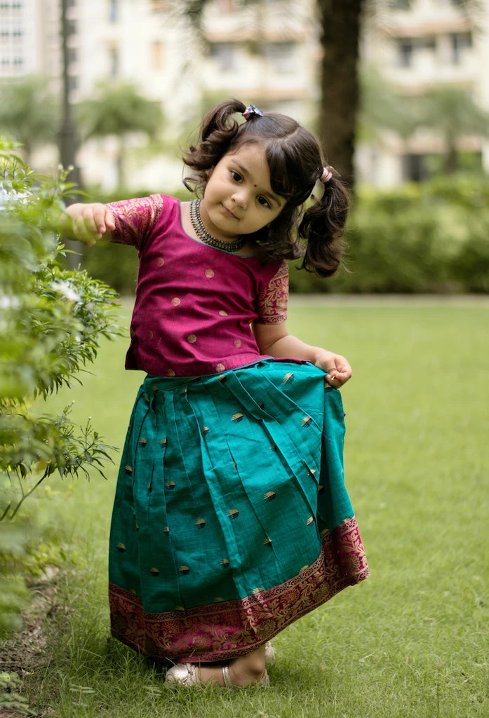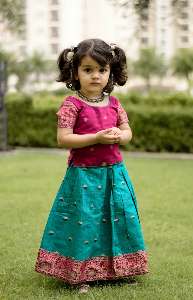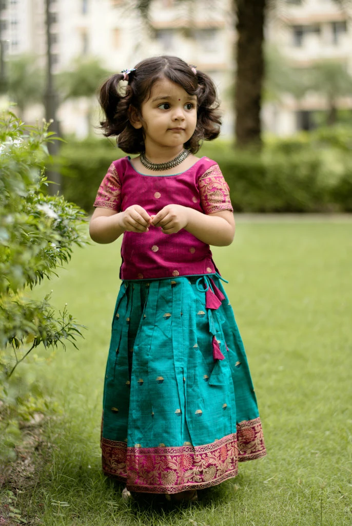Chanderi cotton silk with beneras border dress for the little one. Dress is fully lined with cotton lining.