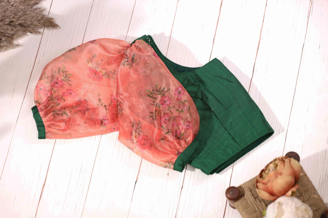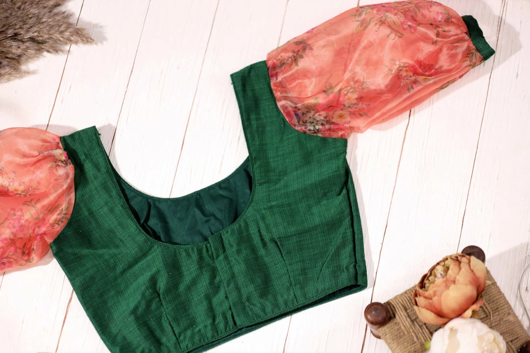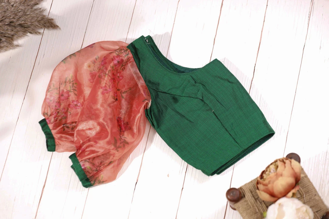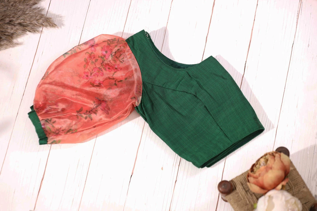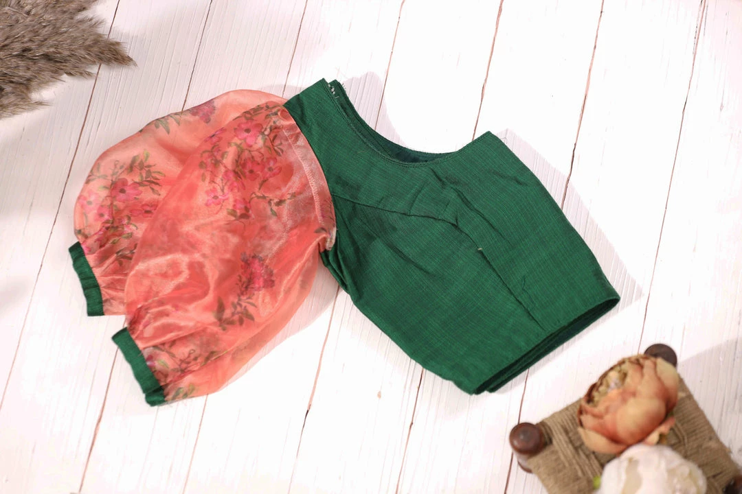Material- Cotton silk chanderi with Printed Organza sleeve