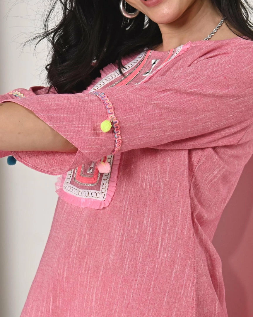 - Cute Pom-Pom Lace Detailing on sleeve and border