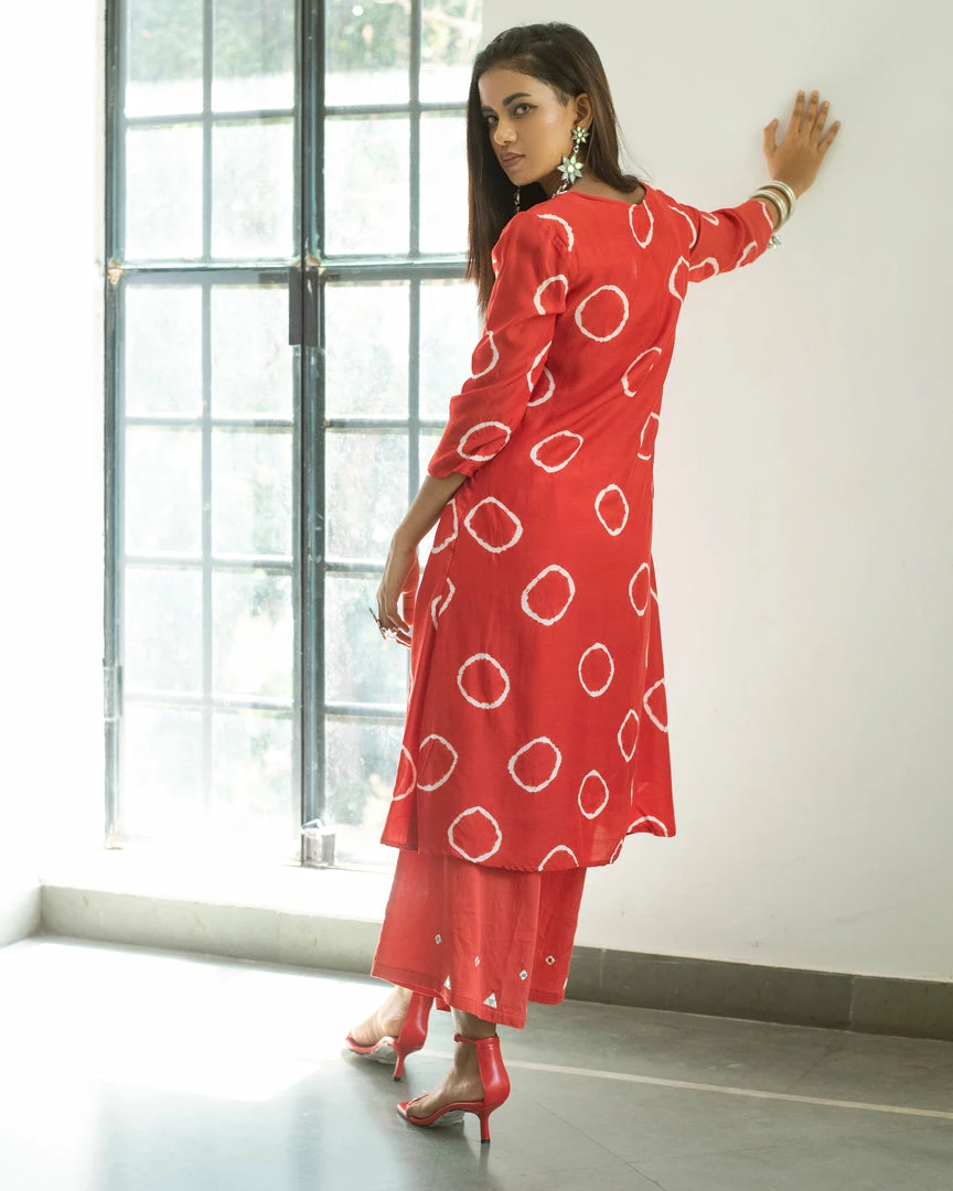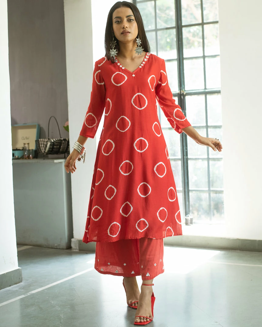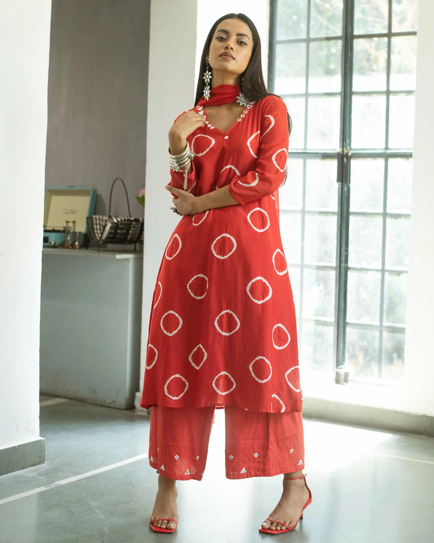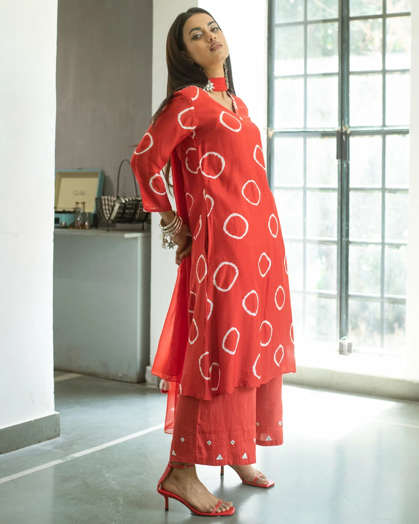 - Hand tied and hand dyed bandhani