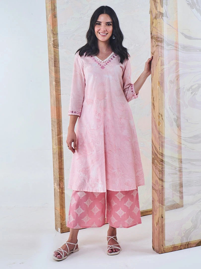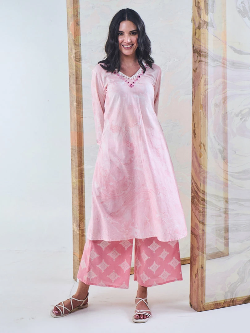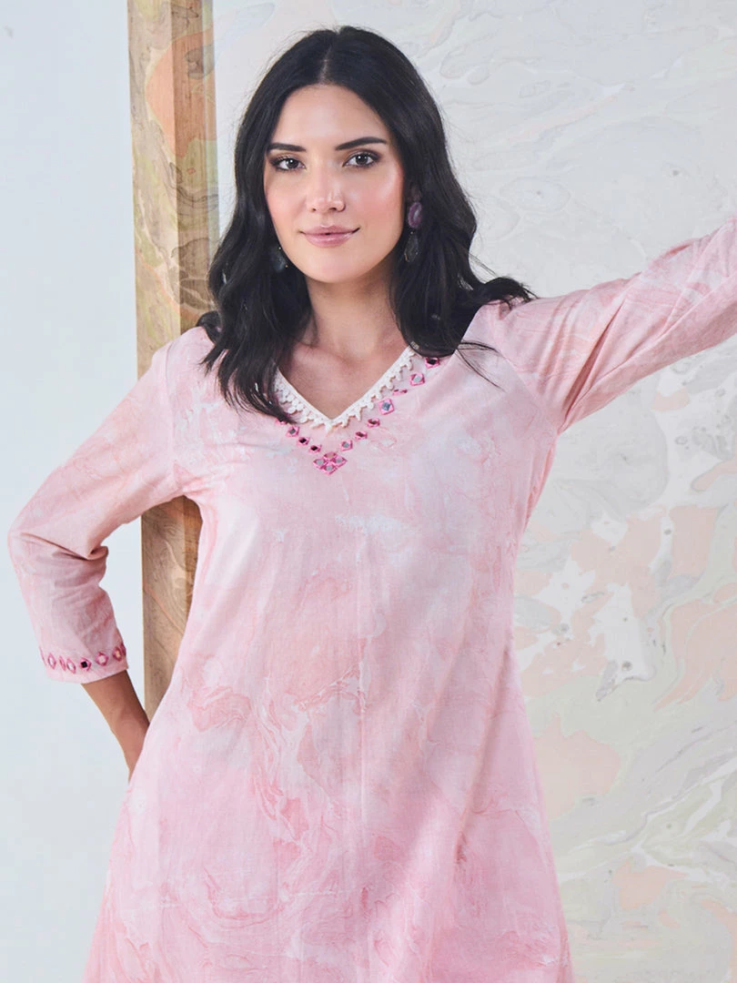 - Real mirror embroidery on neckline with lace detailing