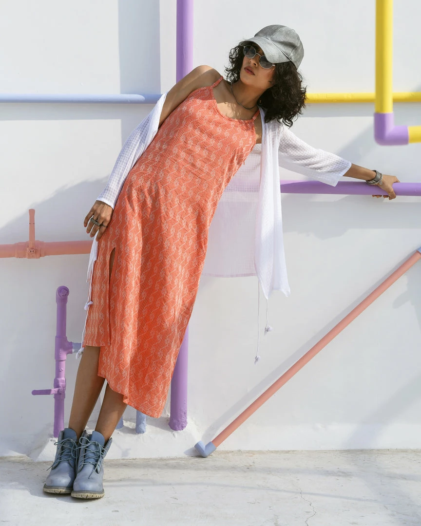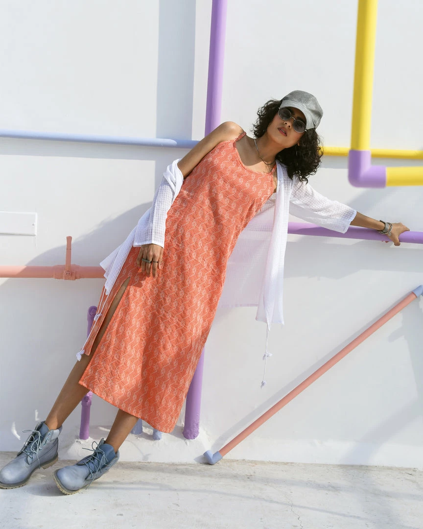 Model’s height is 5″7″ and her bust size is 34″. She is wearing size SMALL