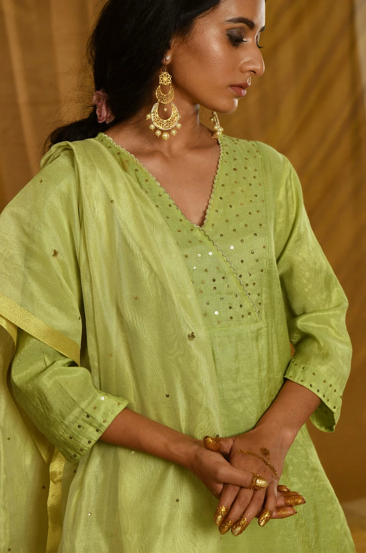 - Sequin work detailing at neck and cuff