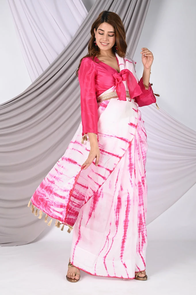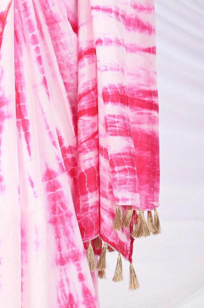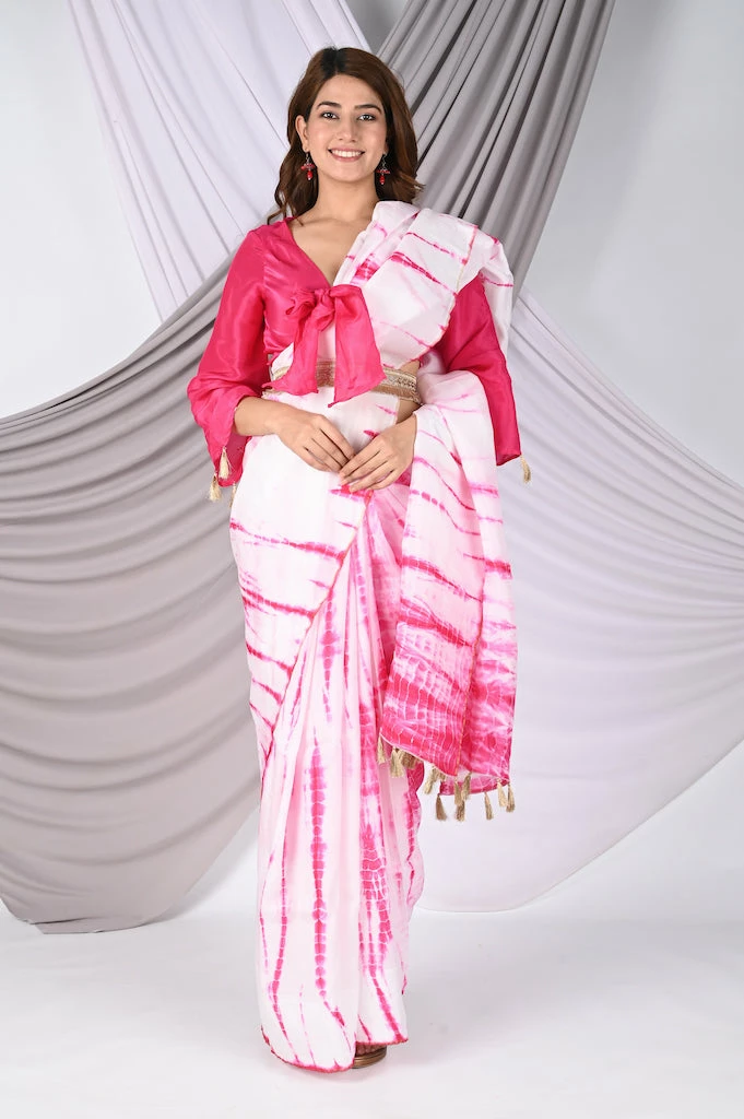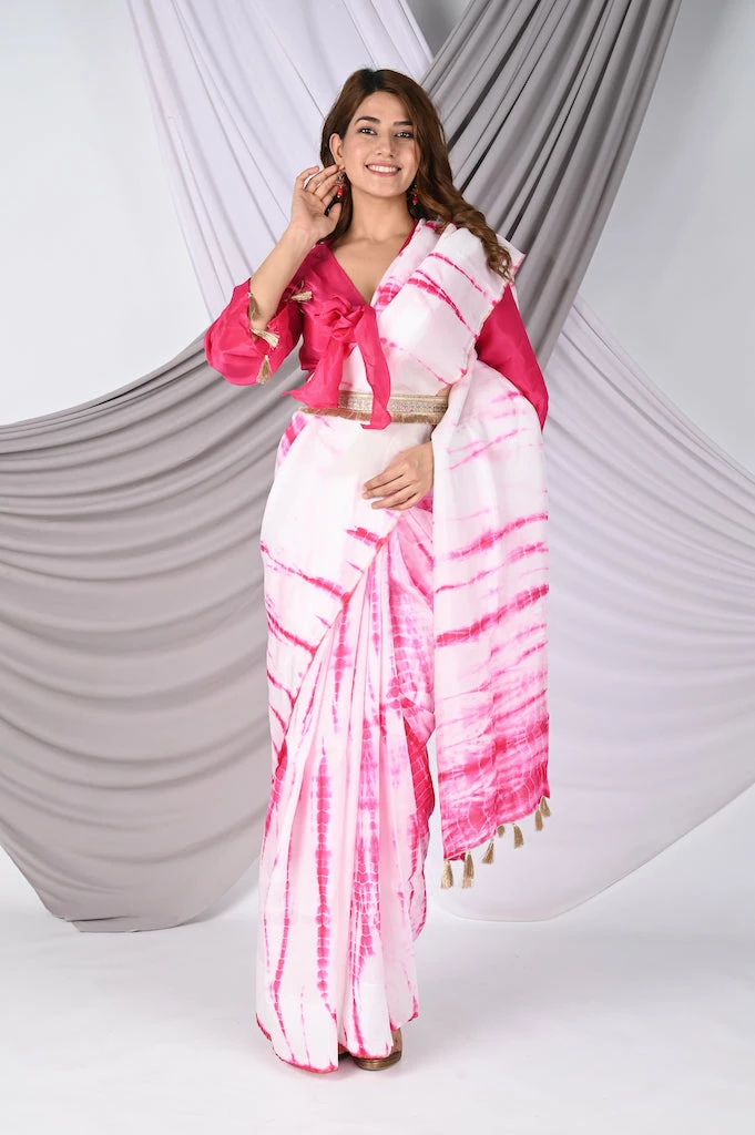 Deck up for your grand affairs and flaunt this upada silk beauty, teamed with mettalic waist belt.