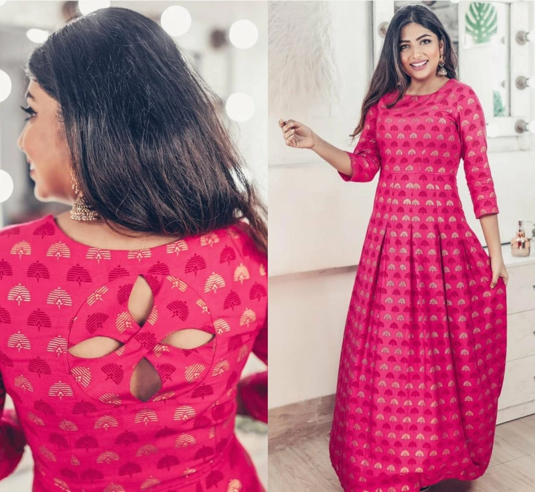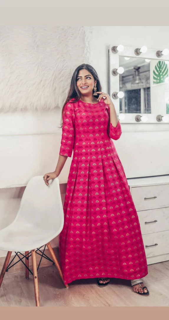 Hand blocked printed dress with box pleats and our signature Floret neckline.