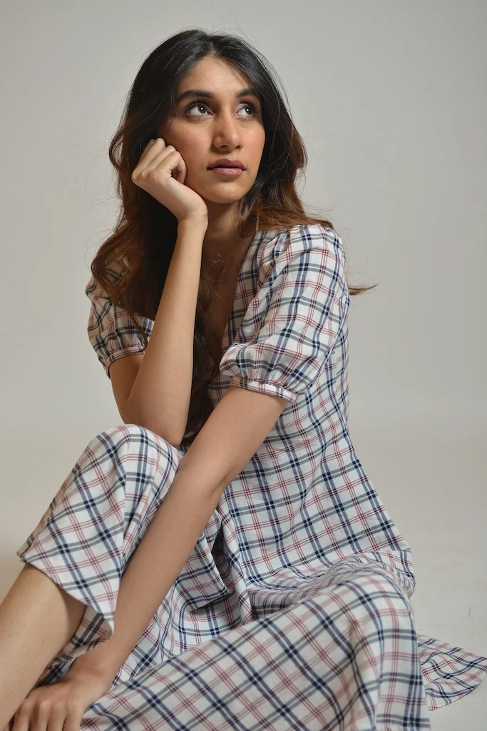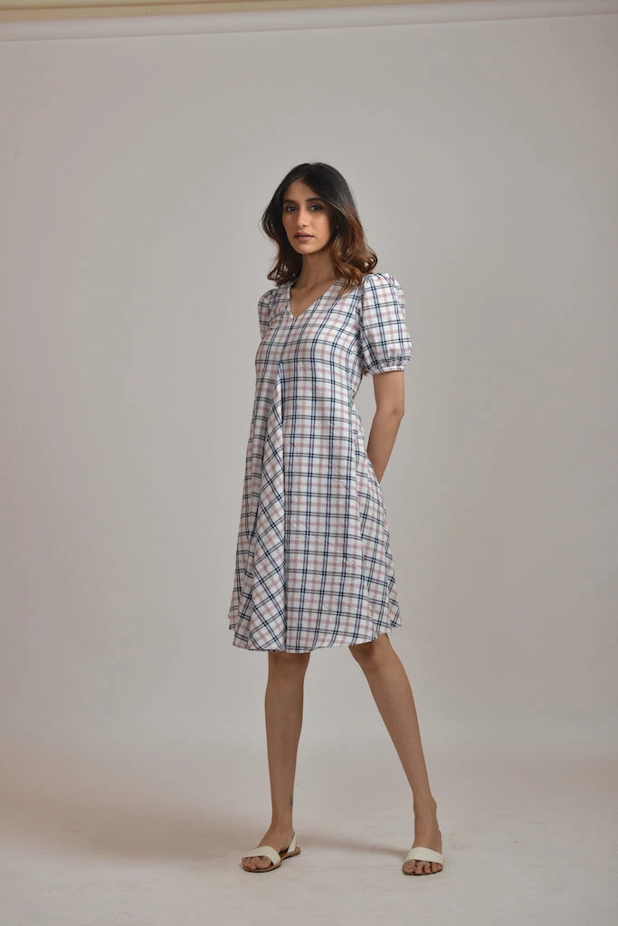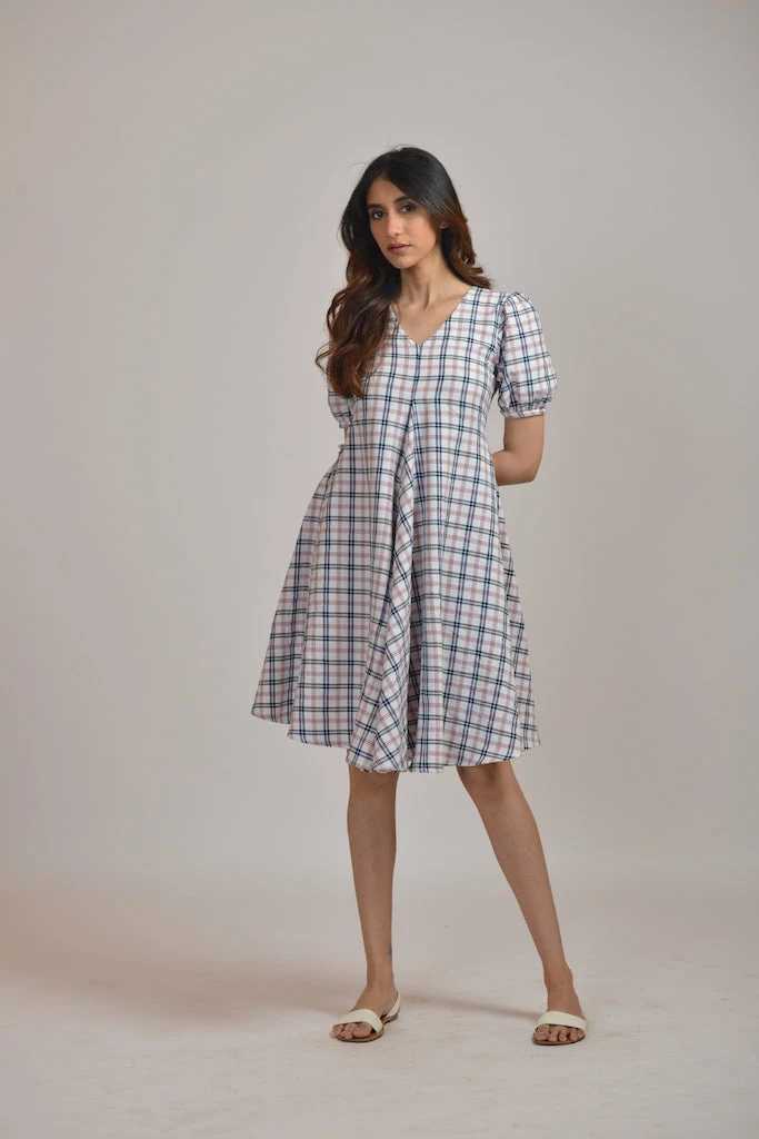 Classy Checks dress with designer pattern silhouette with breathable fabric, making it a perfect choice for Day outings.