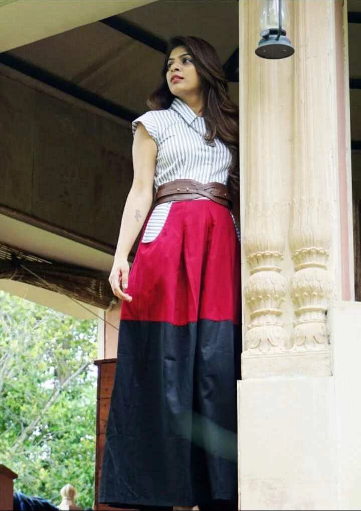 Striped cotton shirt Dress with patchwork and box pleat details along with pockets on both sides.