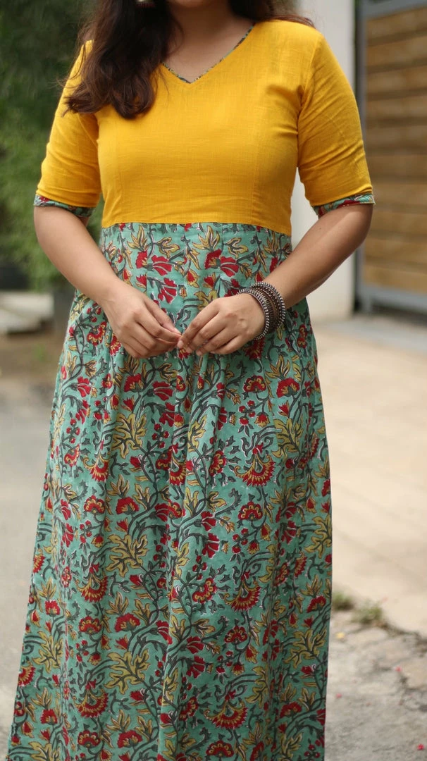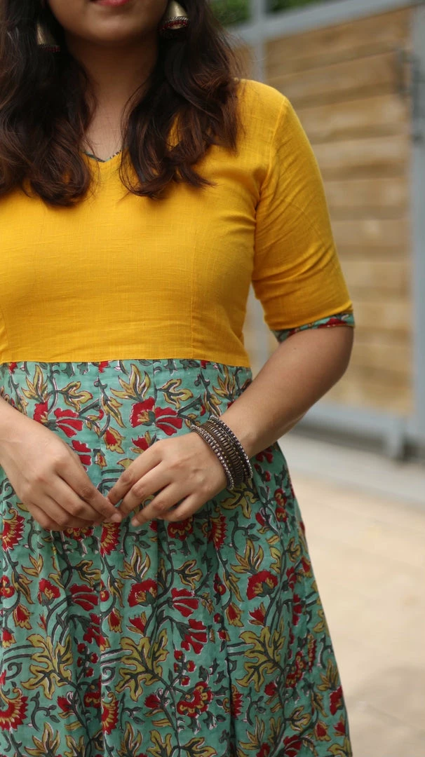 Patola Printed Silk with Plain Taffeta is a simple yet ethnic look. Patola printed Silk used in Yoke and Sleeve. Cotton Lining Provided