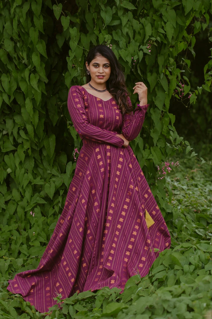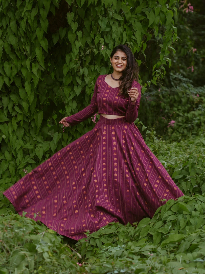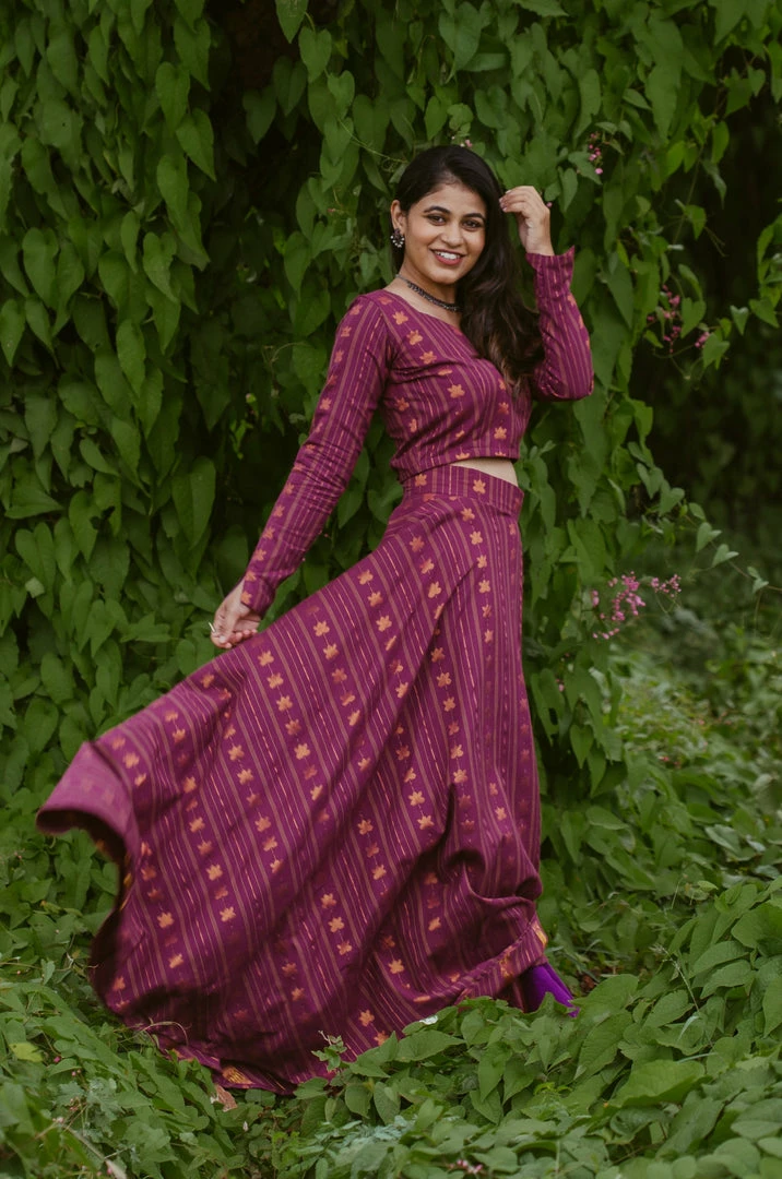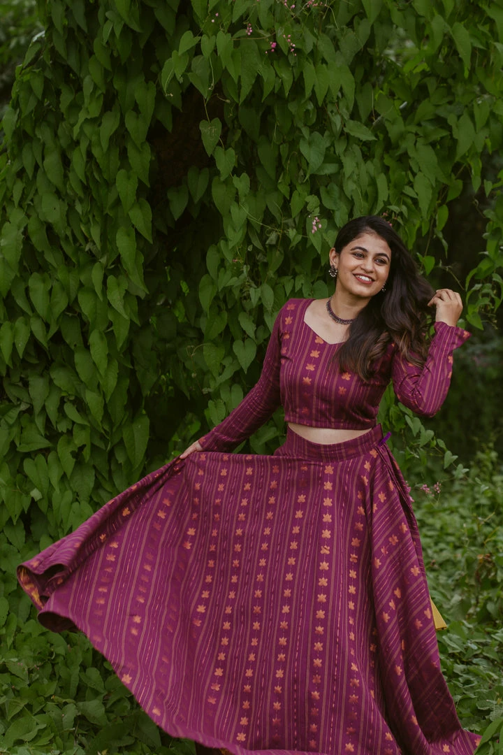 Purple cotton lotus zari weaved skirt set suits perfect for your festive or events