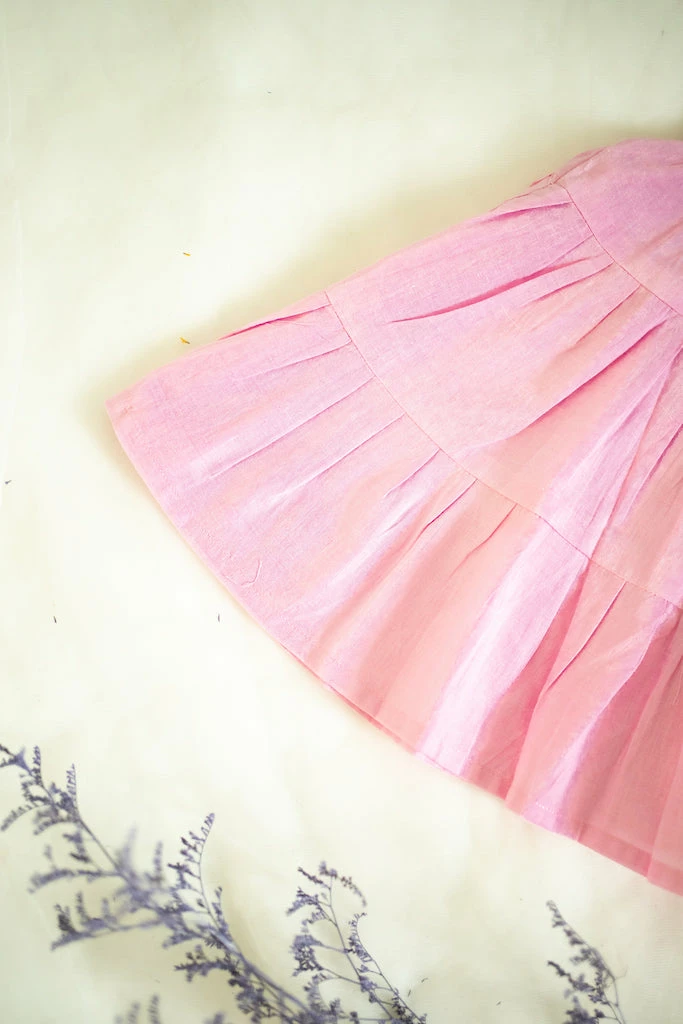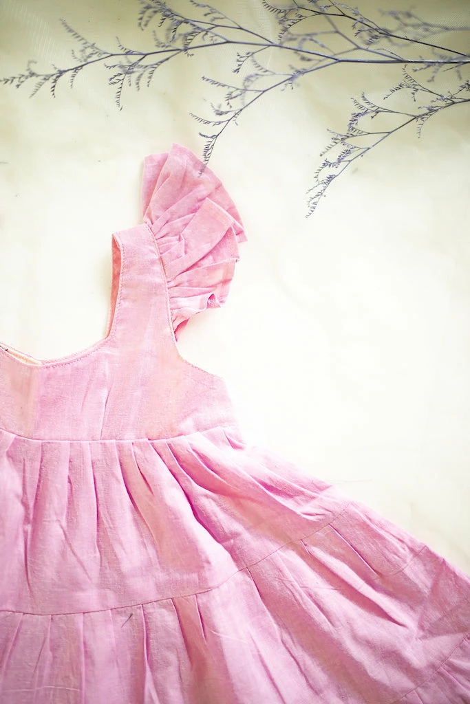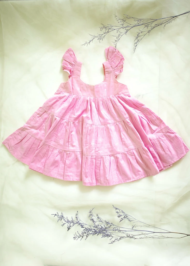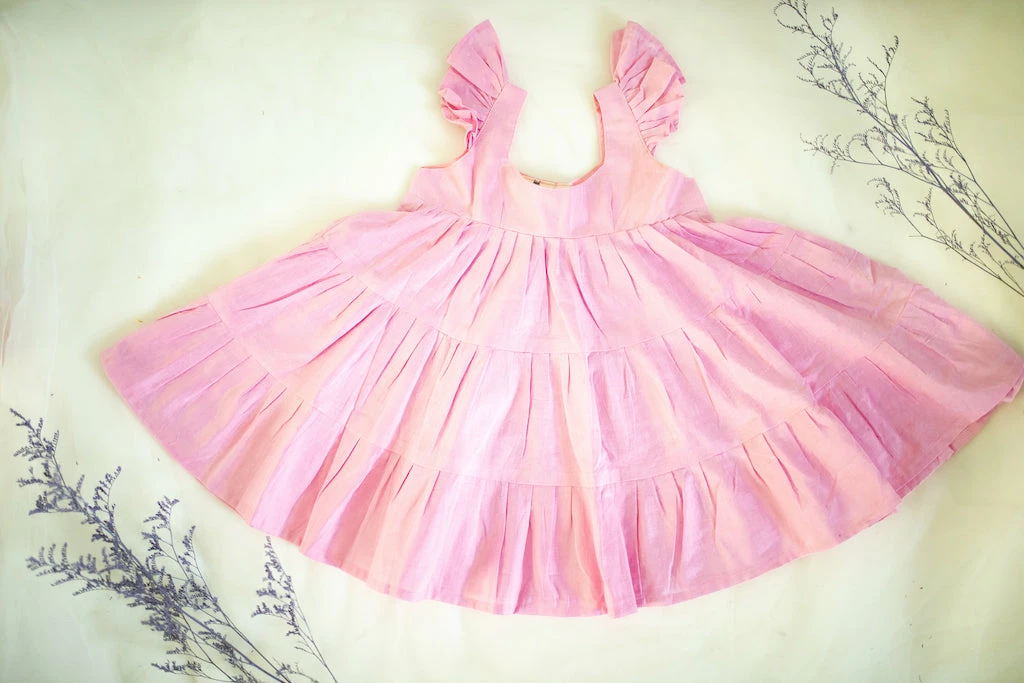 A handloom cotton dress finished with multiple layers. This is a knee-length dress.