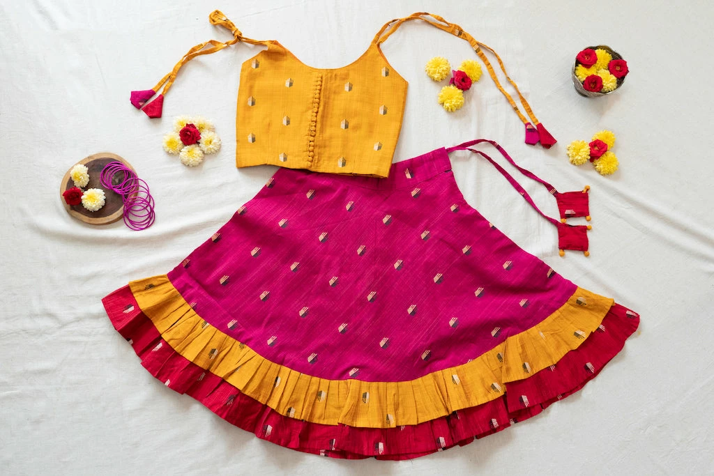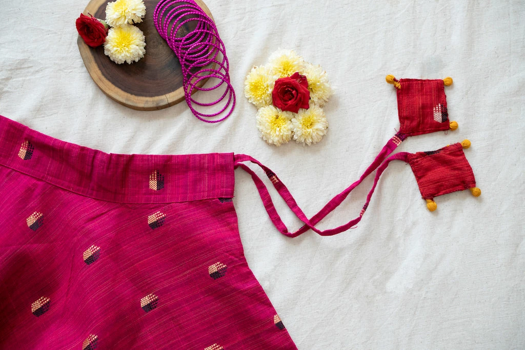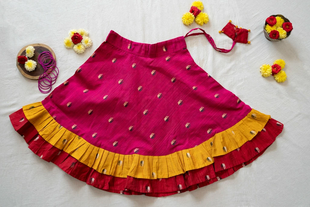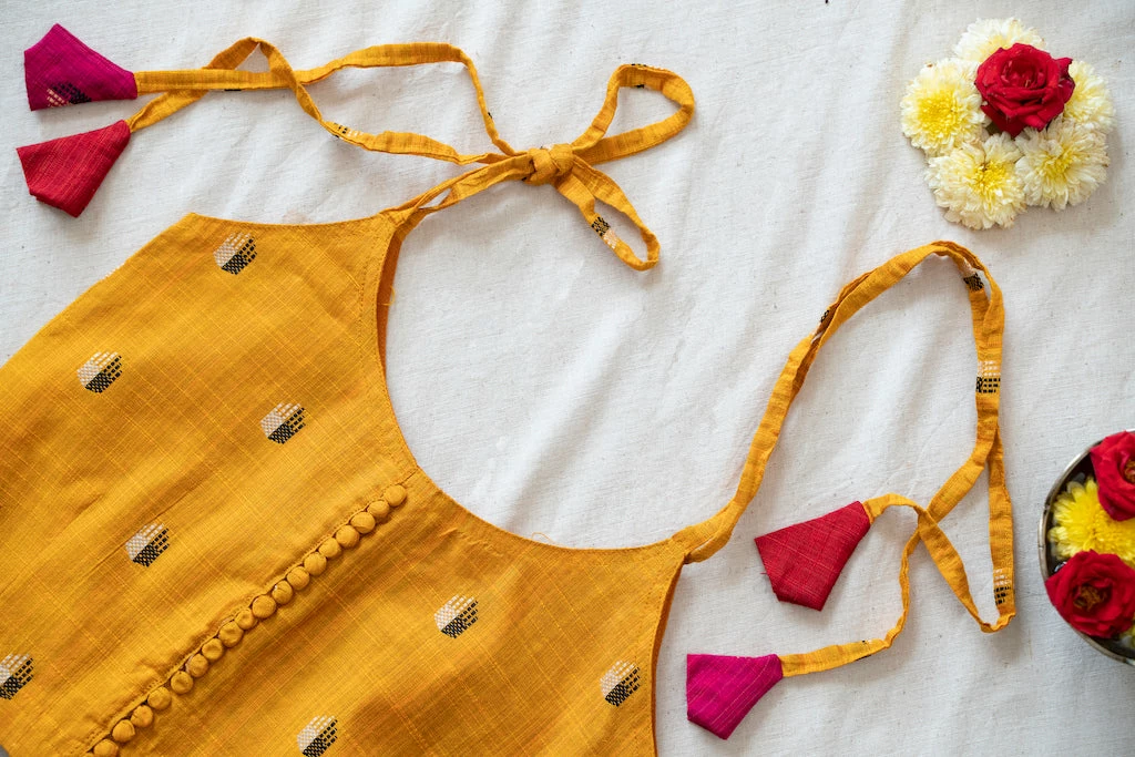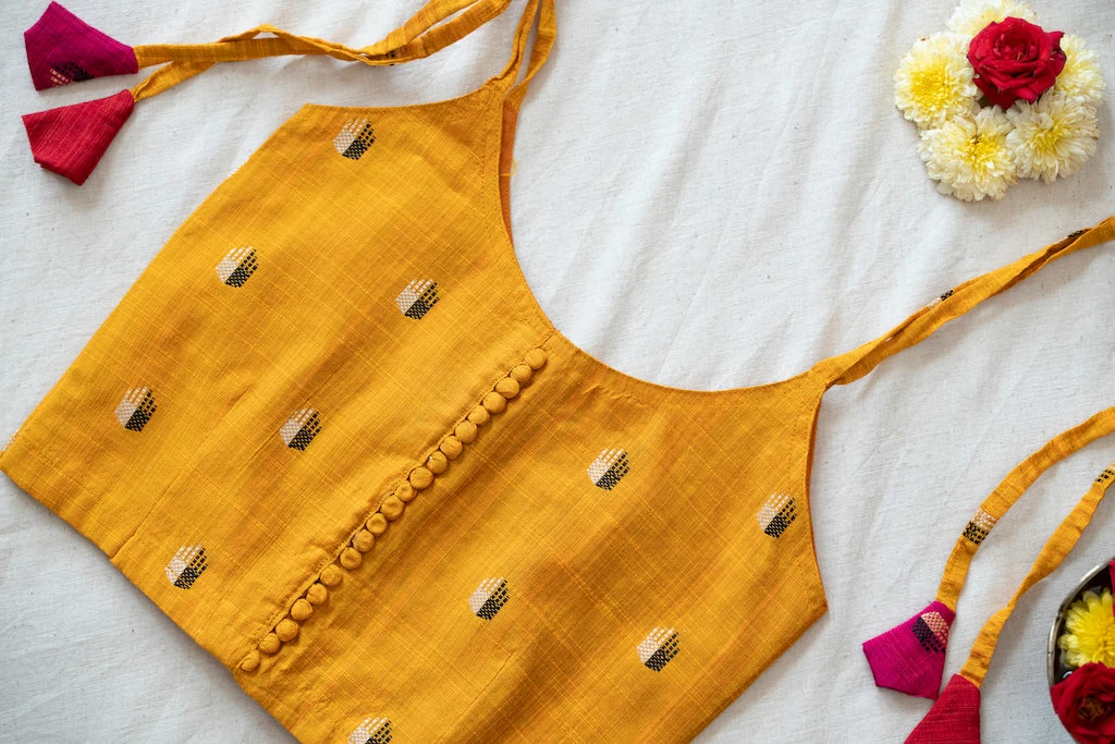 Wash care: Hand wash seperately in cold water with mild detergent. Do not bleach. Iron on reverse. Dry in shade.