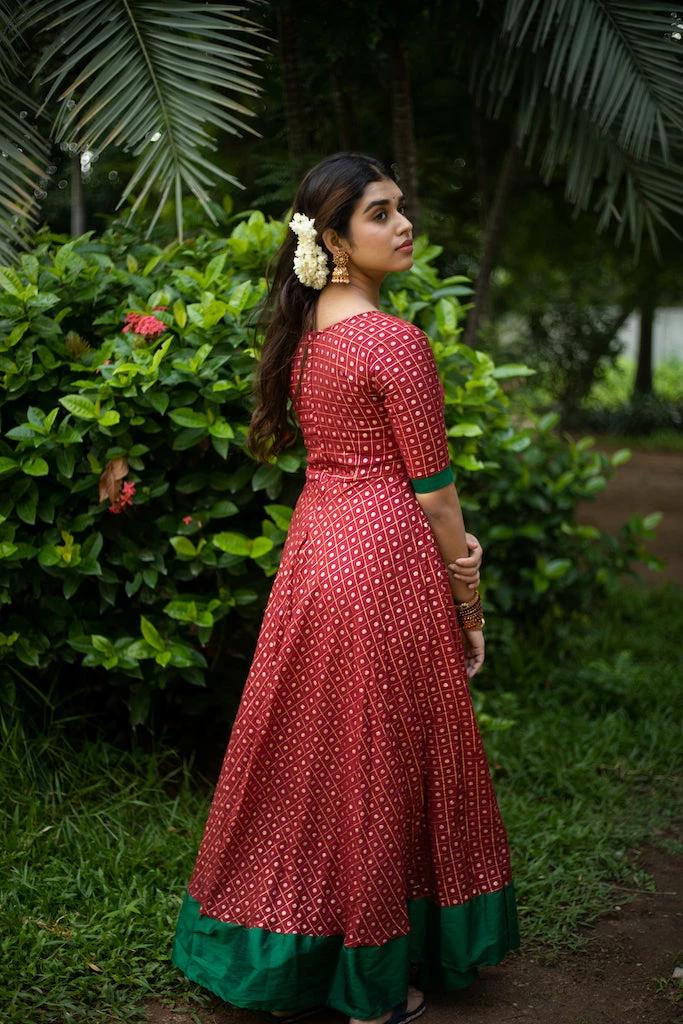 An anarkali made with pink chanderi zari silk finished with tissue borders. This anarkali is fully lined and does NOT come with pants or leggings. Please scroll down and check the tab “size guide” before selecting your size from the variants. We suggest that you cross check your body measurements with our size chart. This will help you to choose the right size.