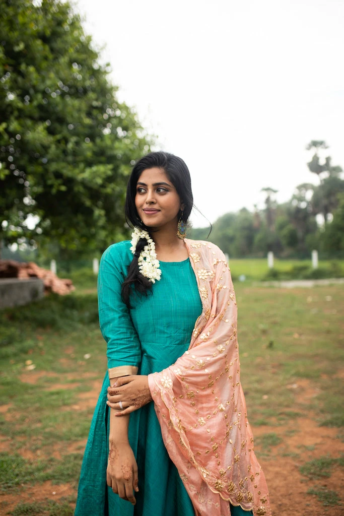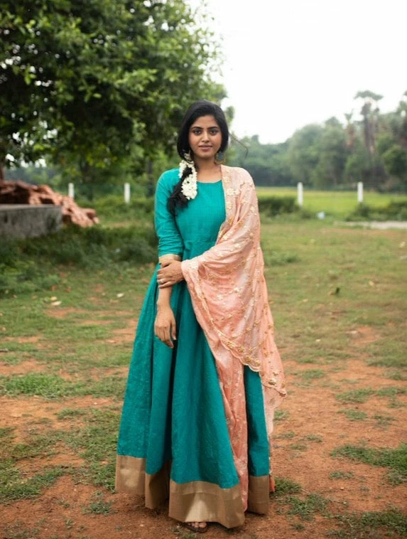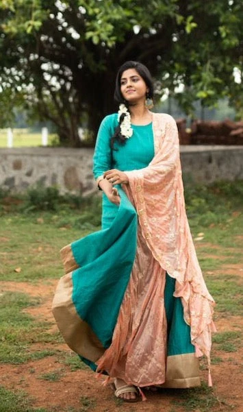 A multi kota silk slub anarkali finished with tissue silk borders is paired with an embroidered organza gota duppatta. This top is fully lined and does NOT come with pants or leggings. We suggest that you cross check your body measurements with our size chart. This will help you to choose the right size.