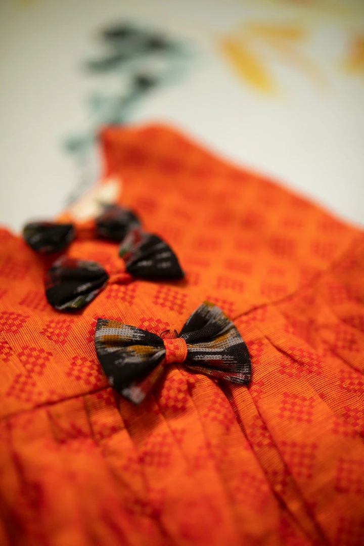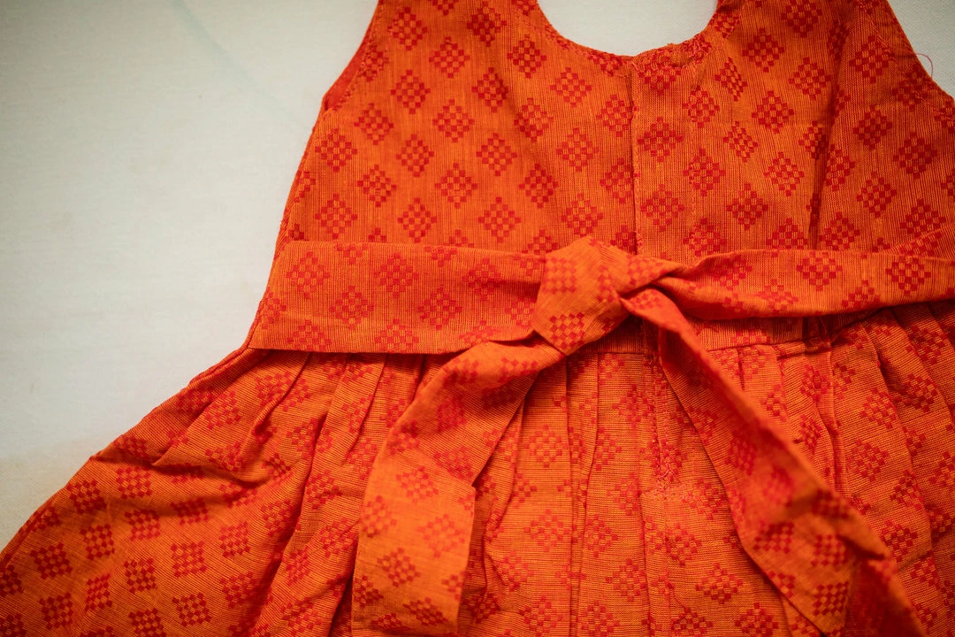 A pure jacquard cotton dress finished with ikat bows in the front. This is a knee-length dress and it is partially lined. Please scroll down and check the tab “size guide” before selecting your size from the variants. We suggest that you cross check your body measurements with our size chart. This will help you to choose the right size.