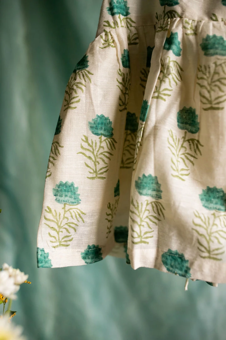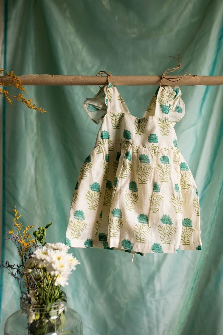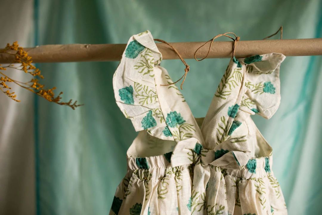 A pure cotton linen dress finished with ruffled sleeves, back and a cute bow at the back of the dress. This is a knee-length dress and it is fully lined. Please scroll down and check the tab “size guide” before selecting your size from the variants. We suggest that you cross check your body measurements with our size chart. This will help you to choose the right size.