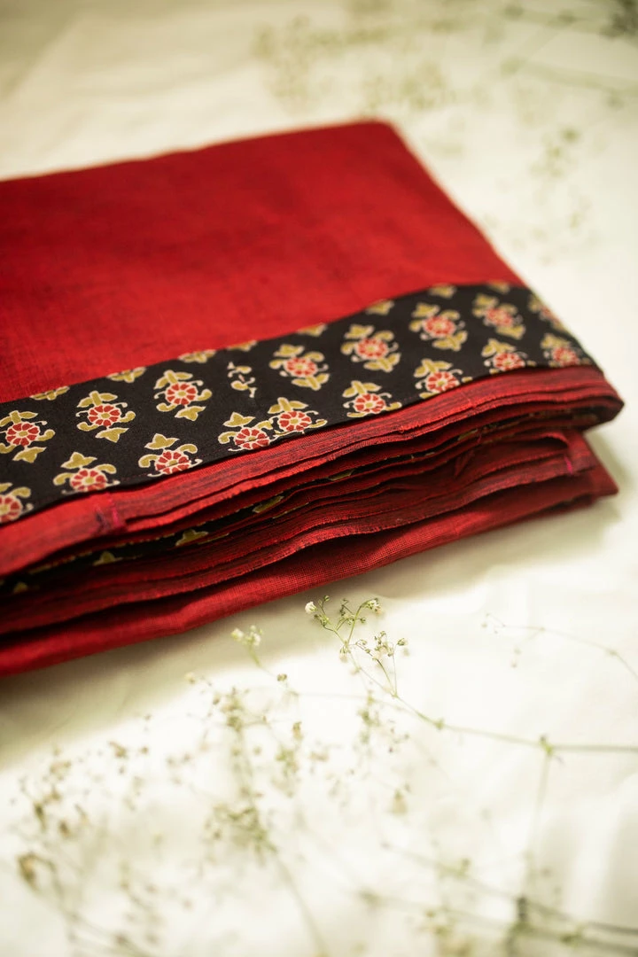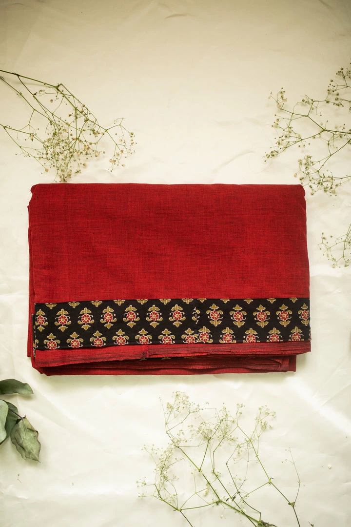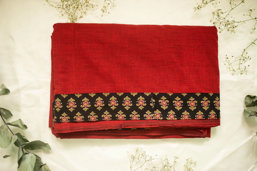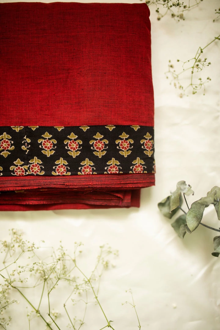 Fabric: Pure handloom kanchi cotton saree finished with black ikkat and zari borders. This saree comes with a maroon kanchi cotton blouse piece.