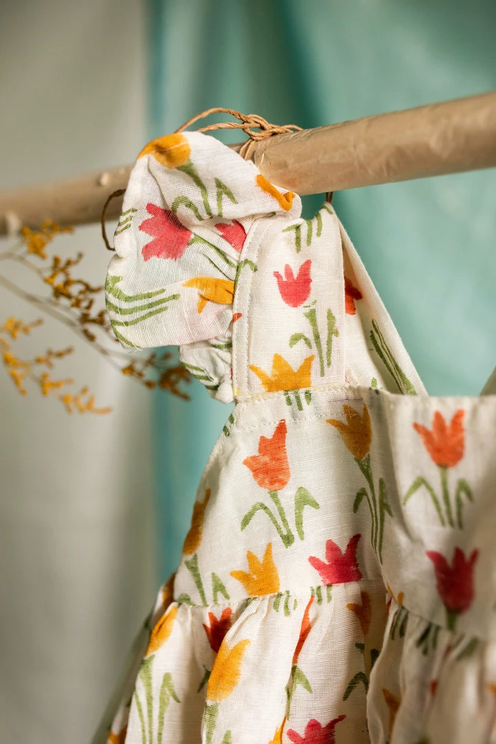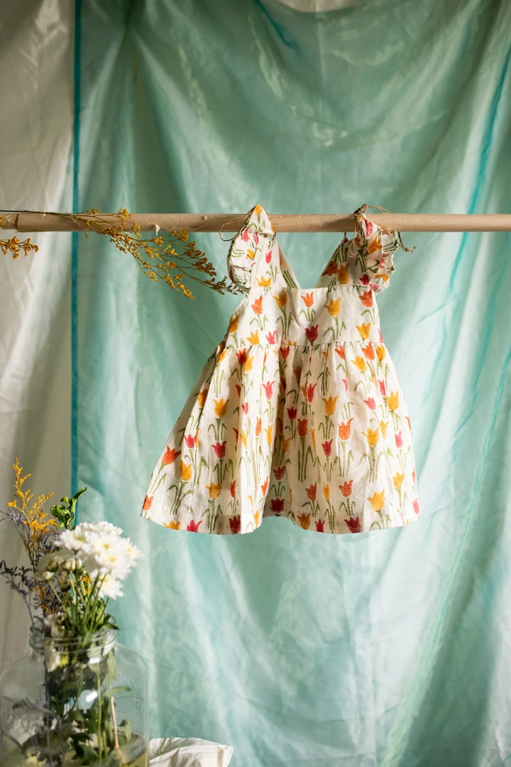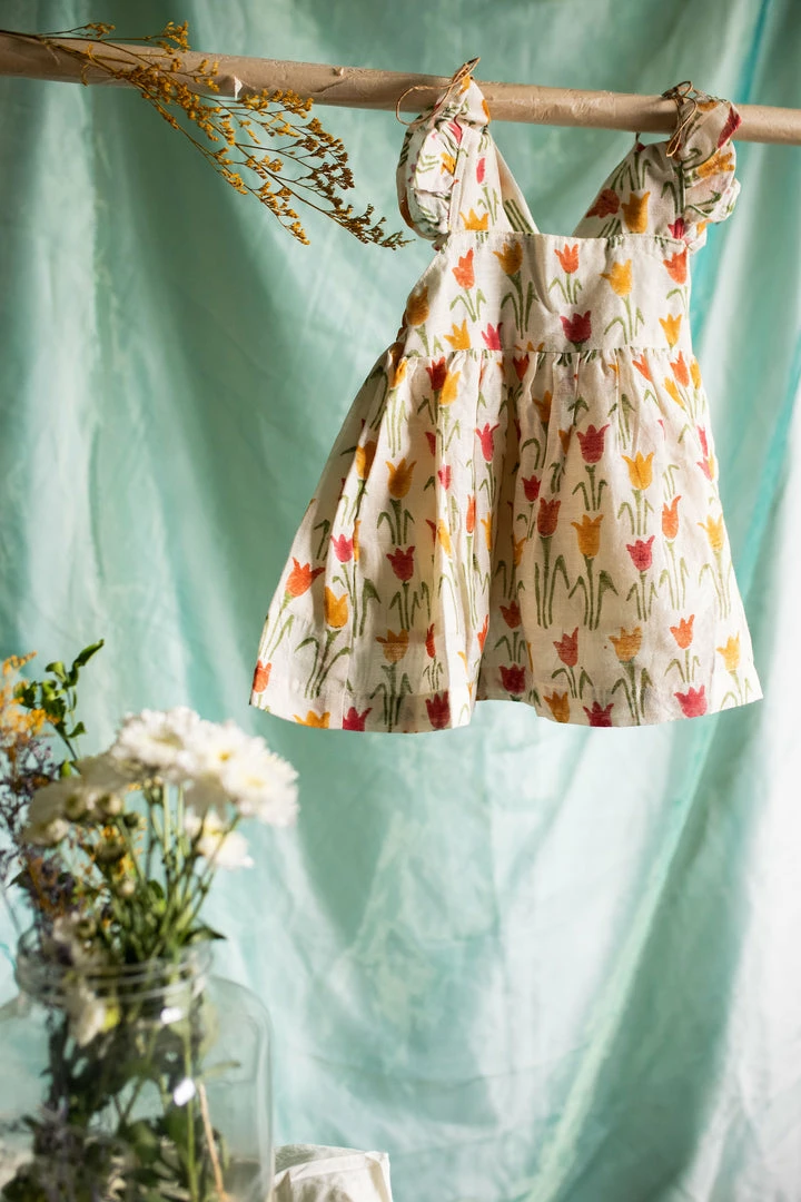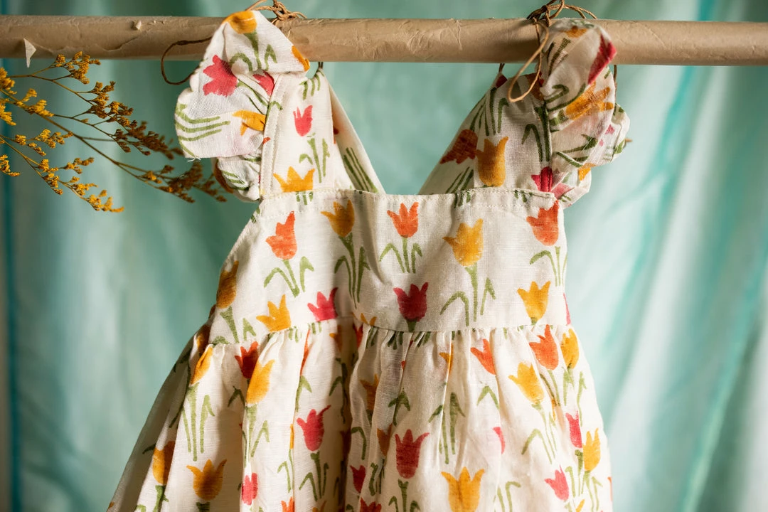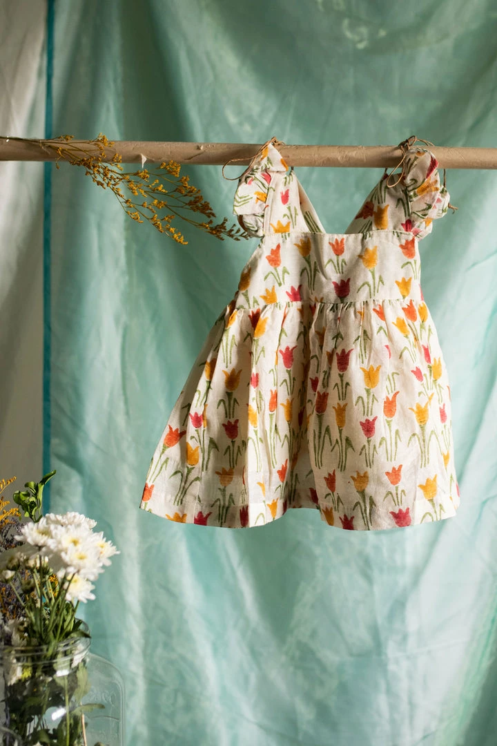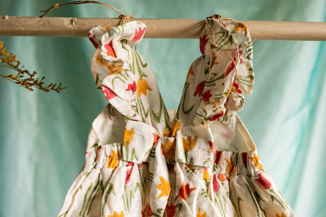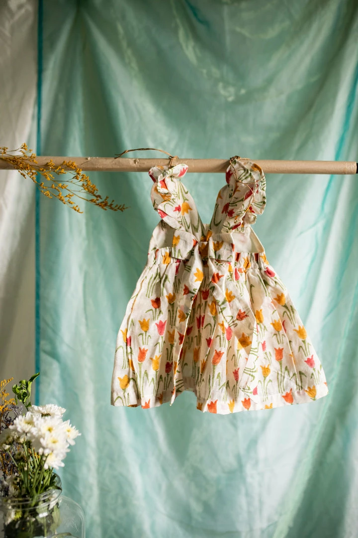 pure cotton linen dress finished with ruffled sleeves, back and a cute bow at the back of the dress. This is a knee-length dress and it is fully lined. Please scroll down and check the tab “size guide” before selecting your size from the variants. We suggest that you cross check your body measurements with our size chart. This will help you to choose the right size.