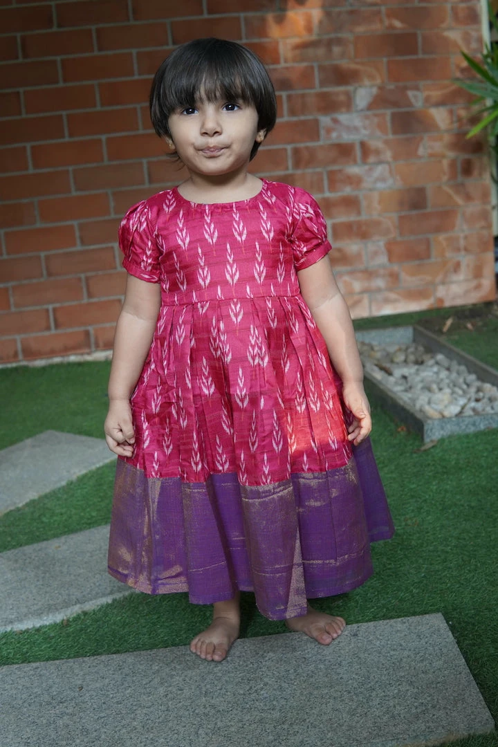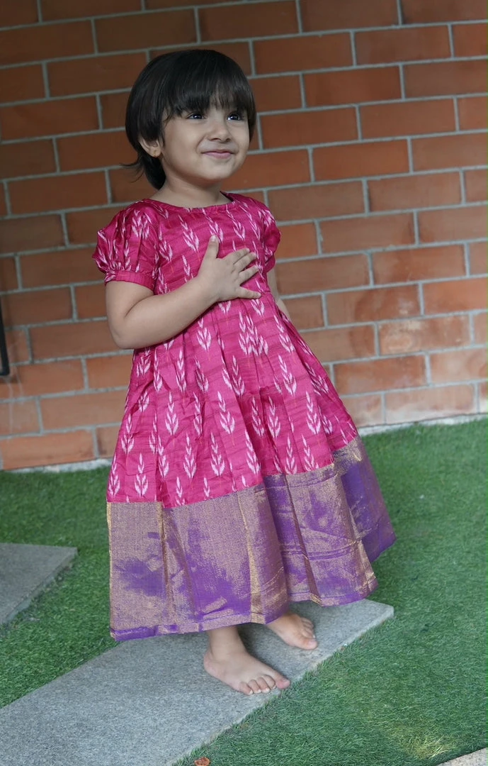 Ikat silk frock with tissue border and mini puff sleevesÂ