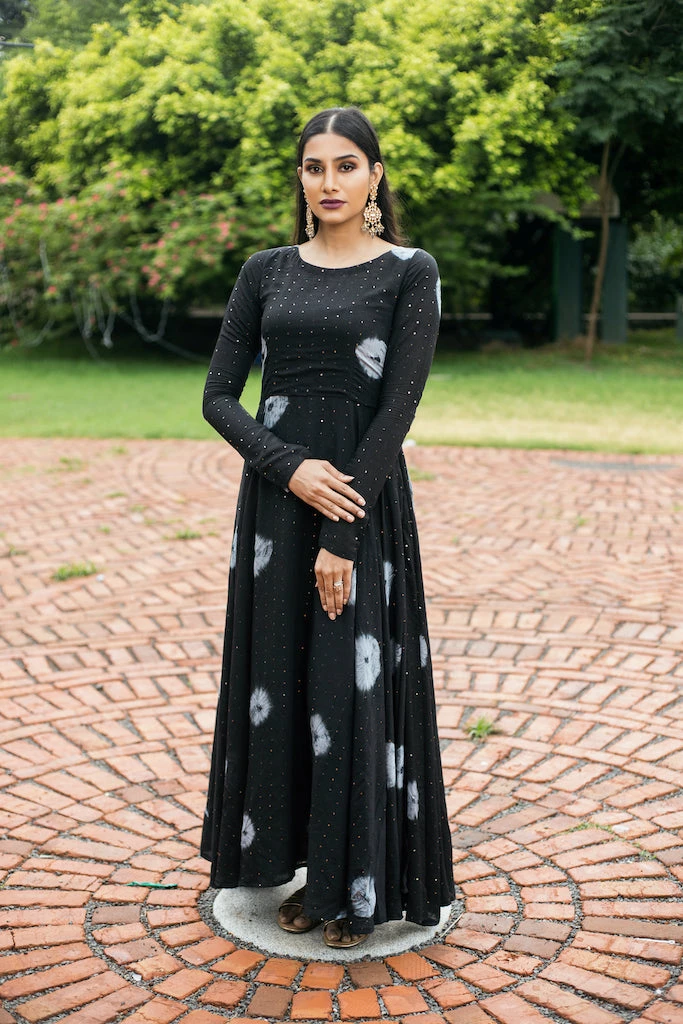 Featuring Siah – with sequins embroidered all over brightening your wardrobe. Created using Muslin Batik printed fabric, which is so light and flowy giving you the right amount of bling and glam for the upcoming festivities.