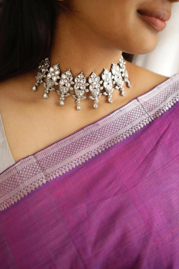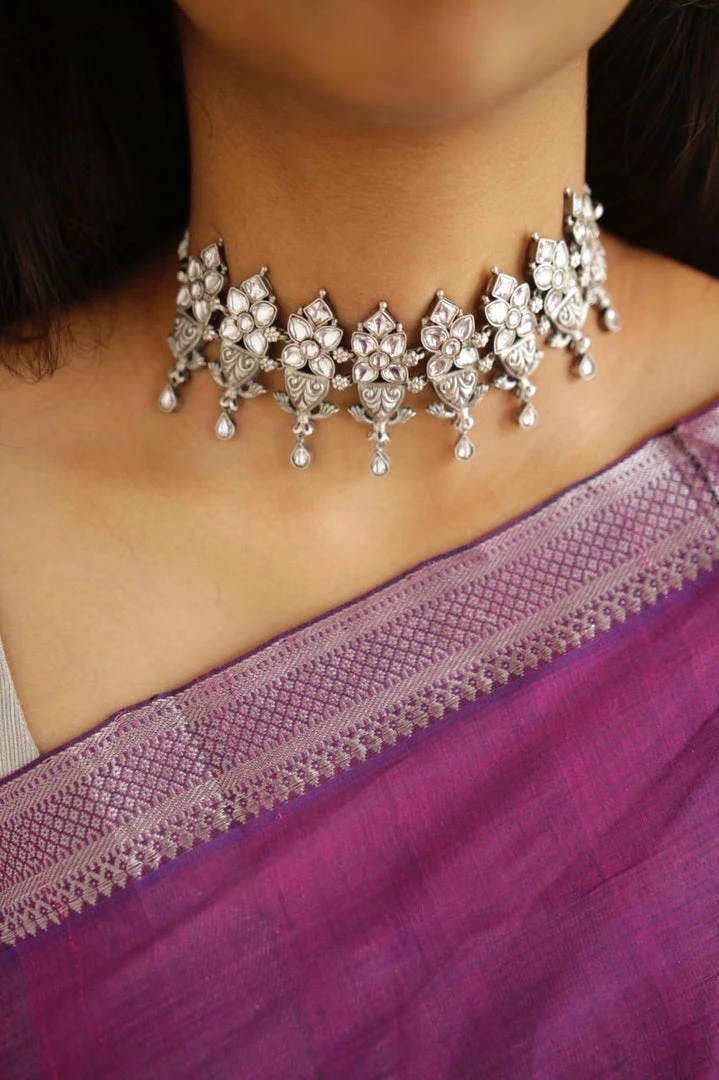 925 silver Kundan neckpiece that can go well with your traditional as well as indo- western outfits.Â
