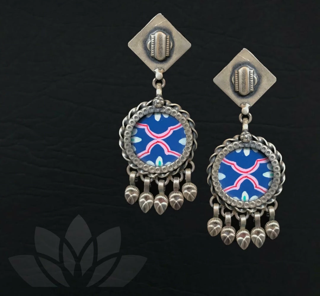 Intricate 925 silver Hand Painted earrings that can go well with your traditional as well as western outfits.