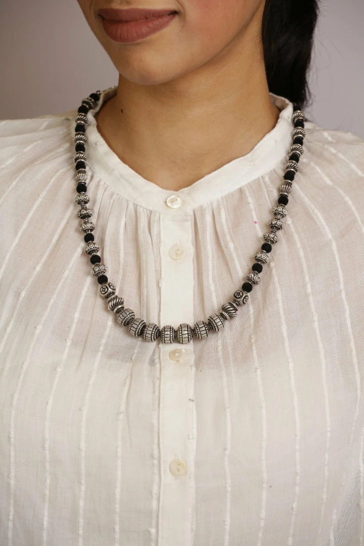 925 silver carving stone neckpiece that can go well with your traditional as well as indo- western outfits.Â