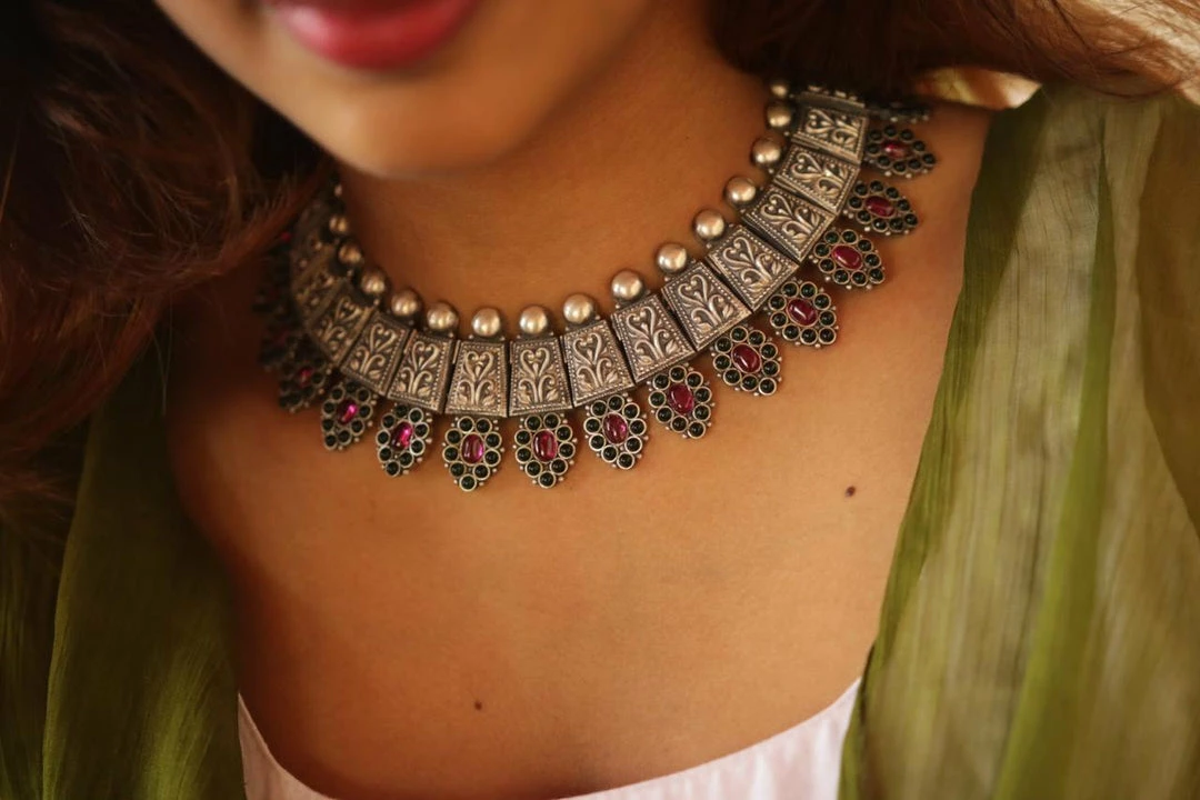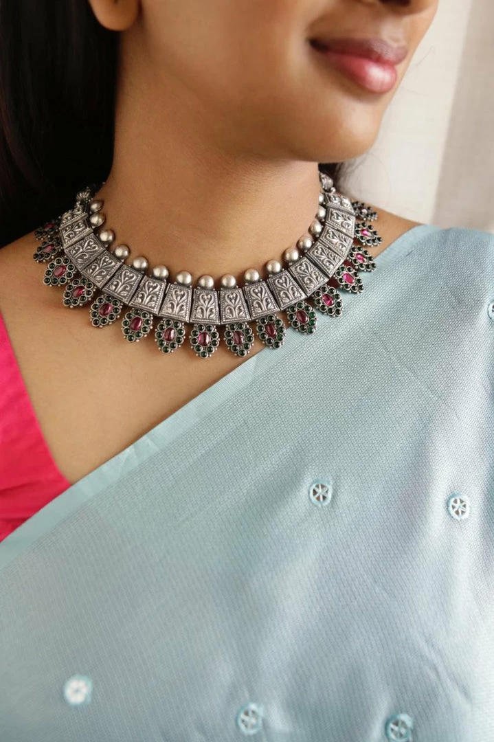 925 silver neckpiece that can go well with your traditional as well as indo- western outfits.