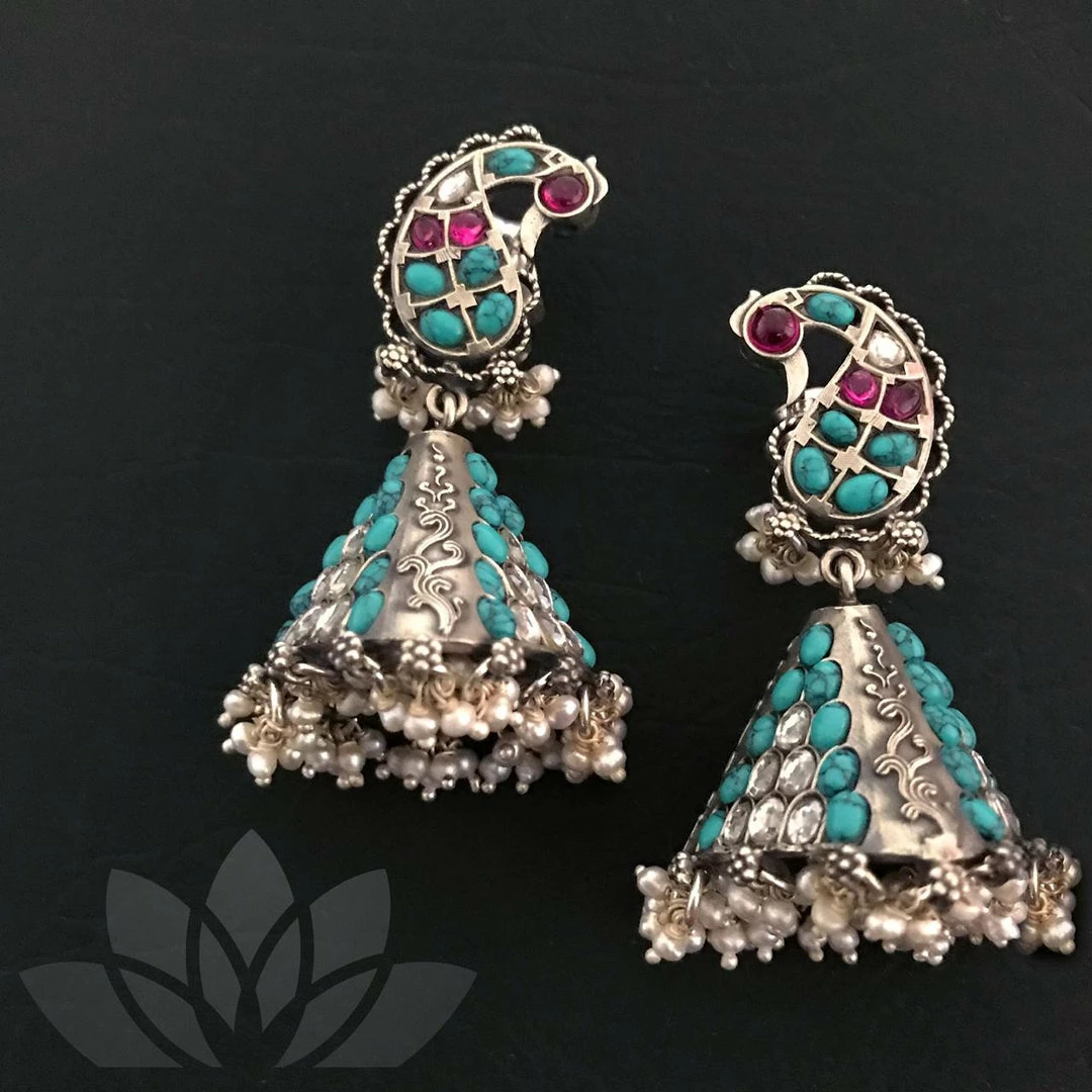 Intricate 925 silver Hand Painted earrings that can go well with your traditional as well as western outfits.