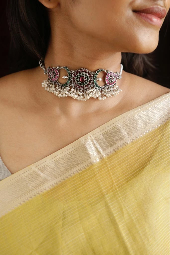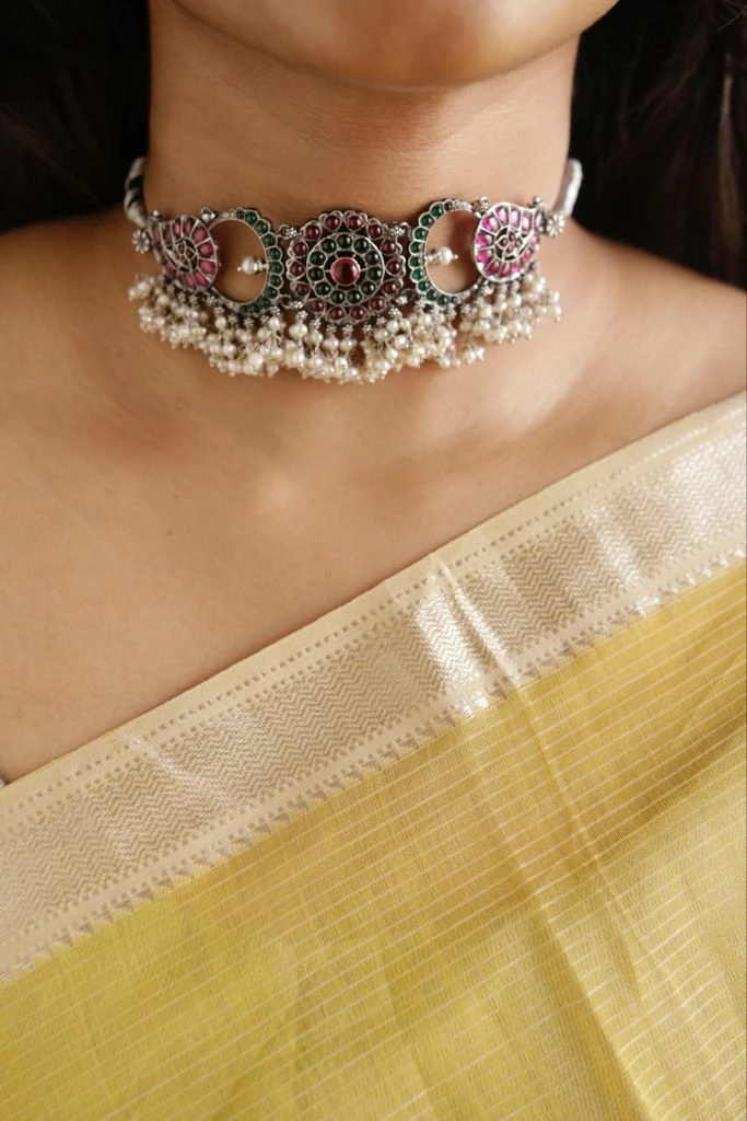925 silver Kemp neckpiece that can go well with your traditional as well as indo- western outfits.Â