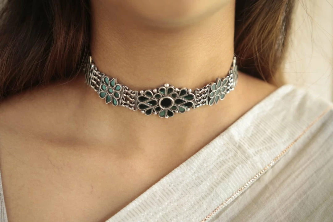 925 silver neckpiece that can go well with your traditional as well as indo- western outfits.