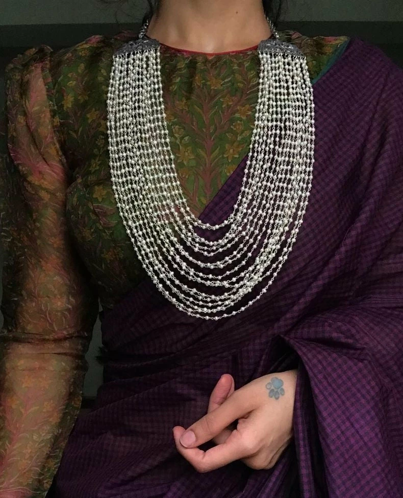925 silver carving stone neckpiece that can go well with your traditional as well as indo- western outfits.