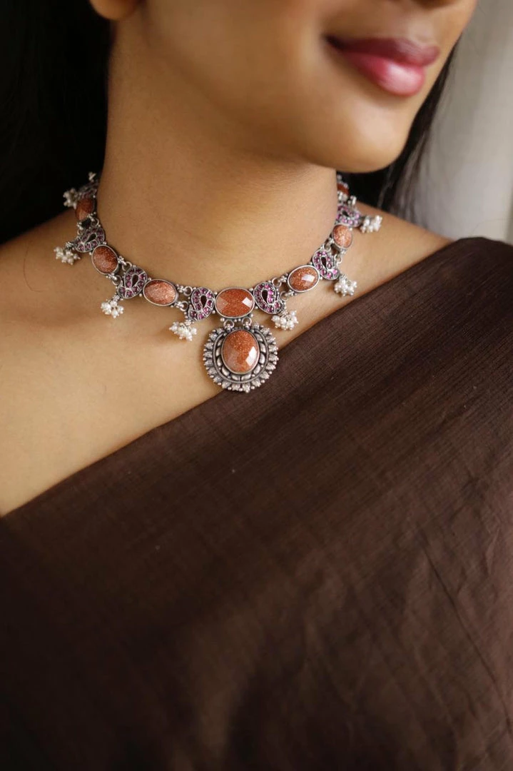 925 siver neckpiece that can go well with your traditional as well as indo- western outfits. Â