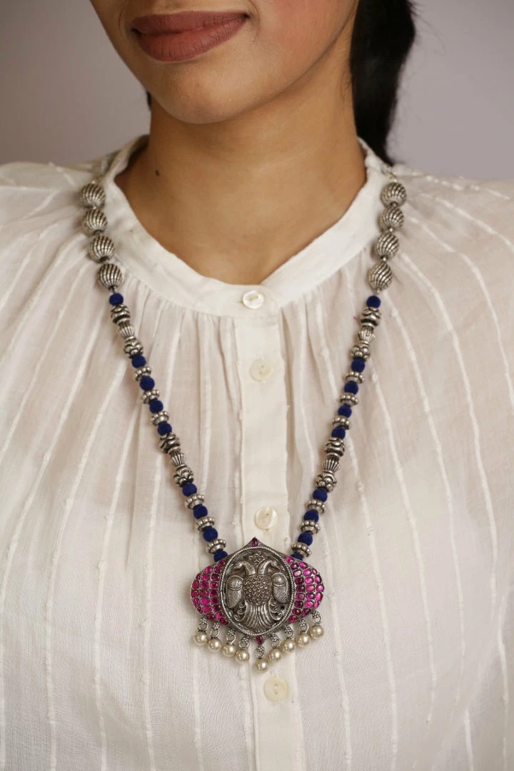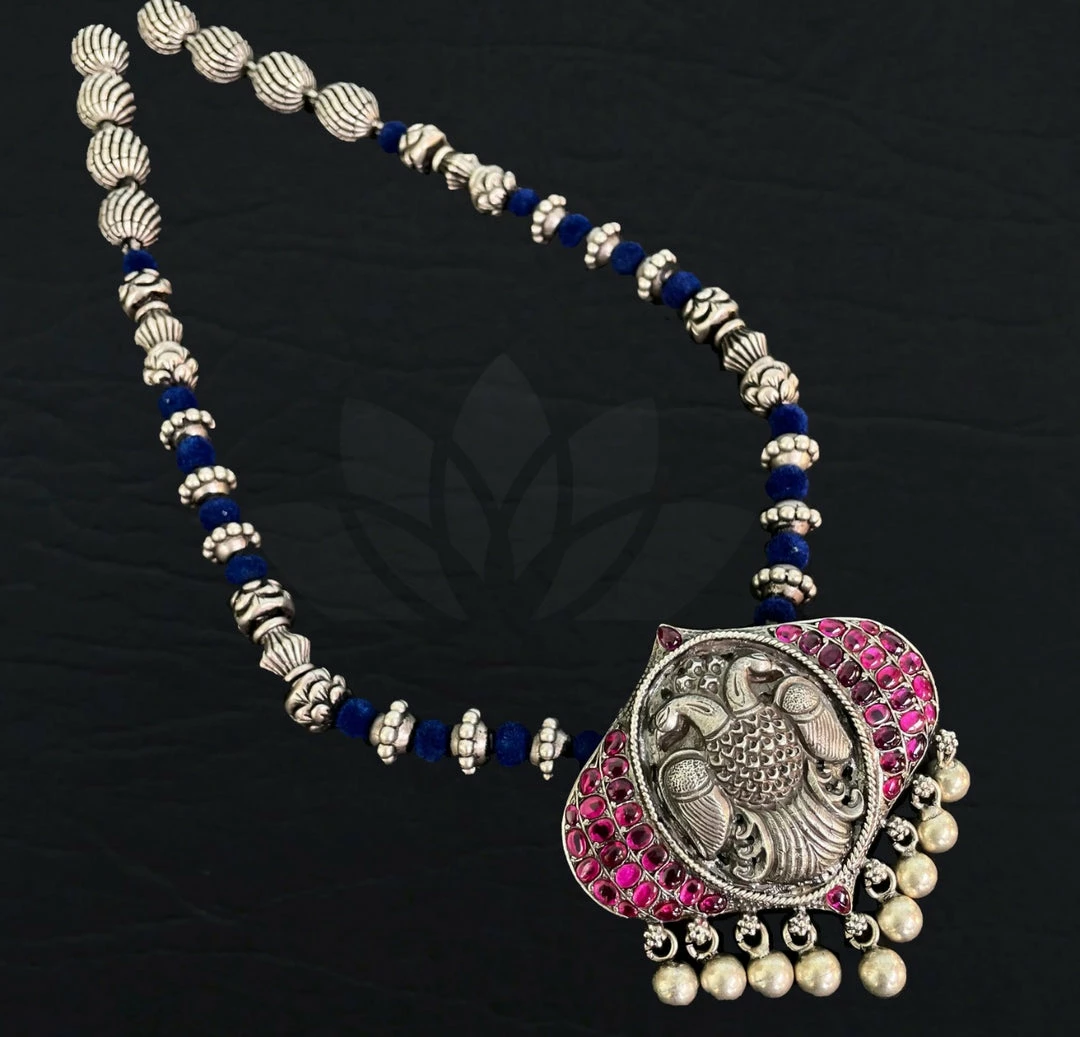 925 silver carving stone neckpiece that can go well with your traditional as well as indo- western outfits.Â
