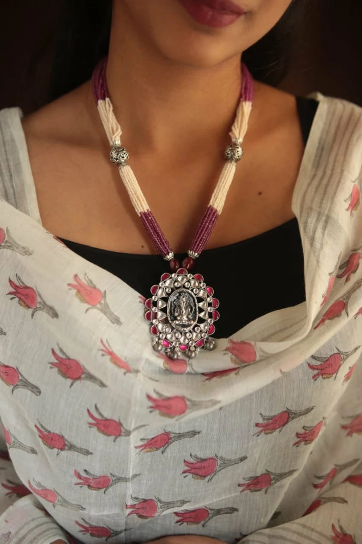 925 siver neckpiece that can go well with your traditional as well as indo- western outfits. Â