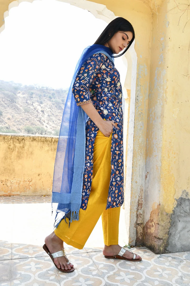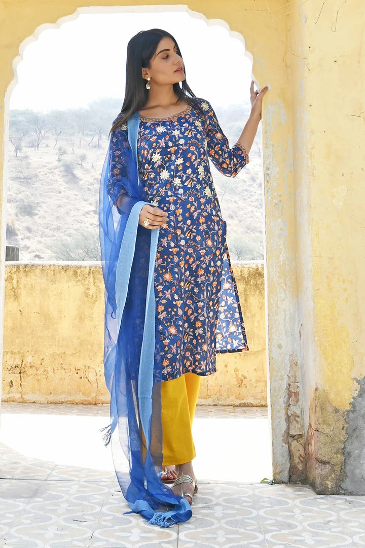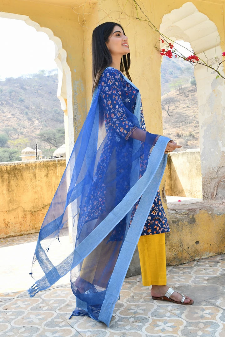 Material:  KURTA – Cotton, PANT – Cotton, DUPATTA – Organza