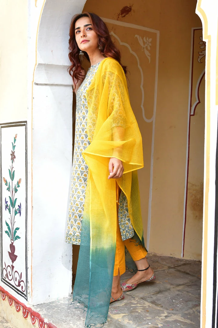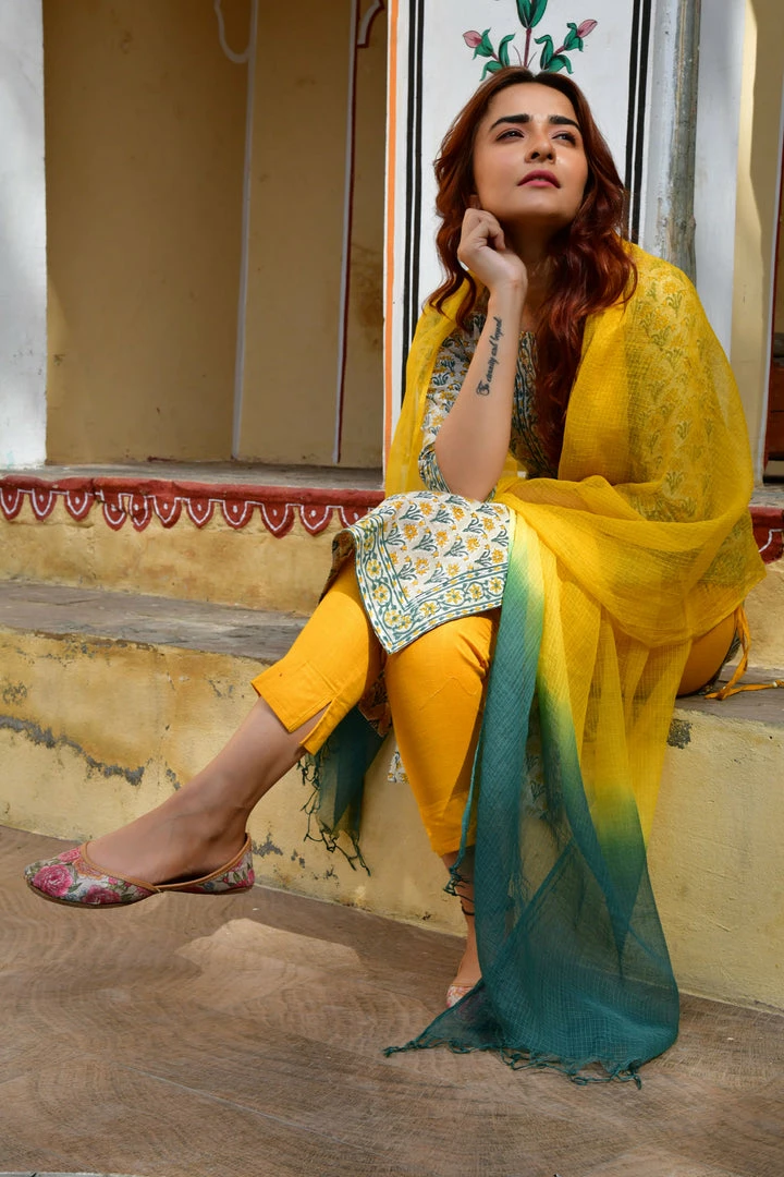 Care:ย Hand Wash Separately In Cold Water With Mild/Liquid Detergents Recommended. Do Not Bleach. Do Not Wring. Do Not Iron On Embellishments. Iron On Reverse. Dry In Shade. Bleeding of Colour in little amount is expected due to traditional dying process.