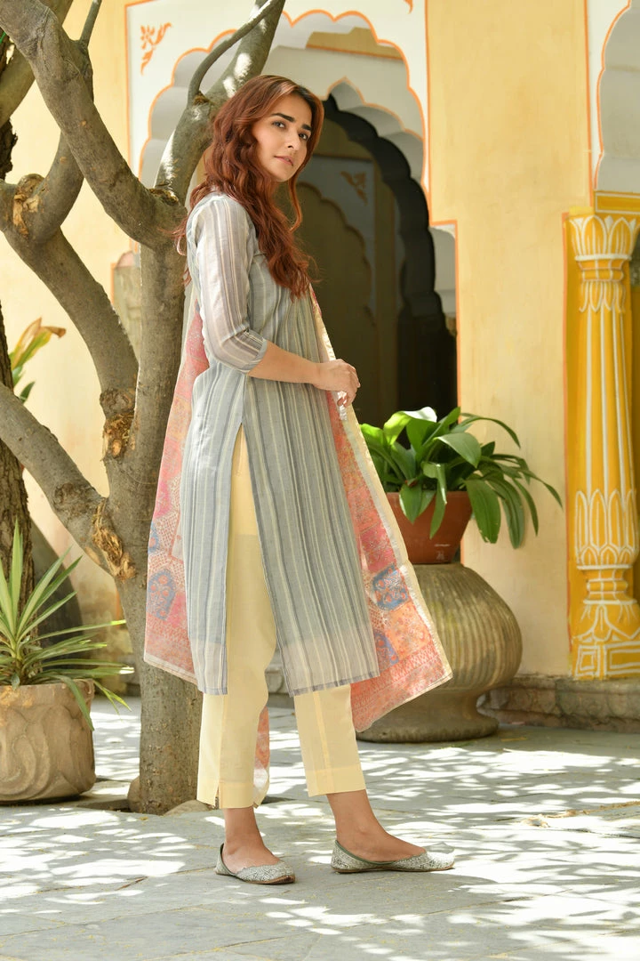 Top + Dupatta -Chanderi , Bottom- Cotton, TOP-LINING INCLUDED